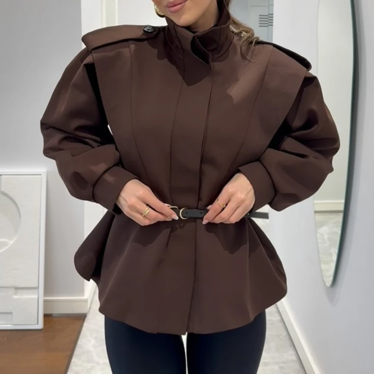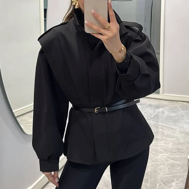 Fashion Lapel Loose Patchwork Short Jacket Autumn New High Street Female Chic Jacket Outwear Women's Trench Coats Custom Jacket