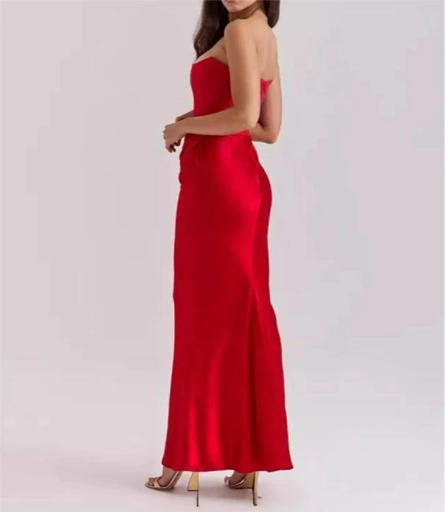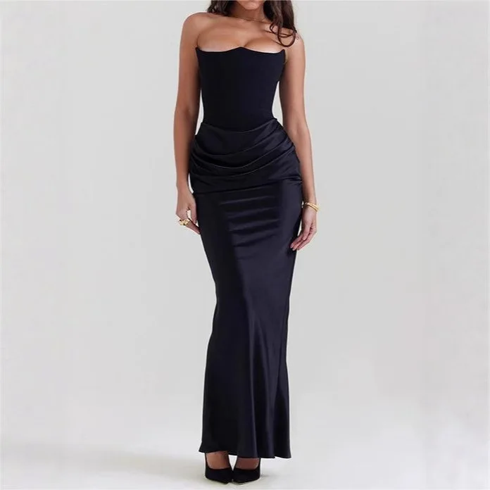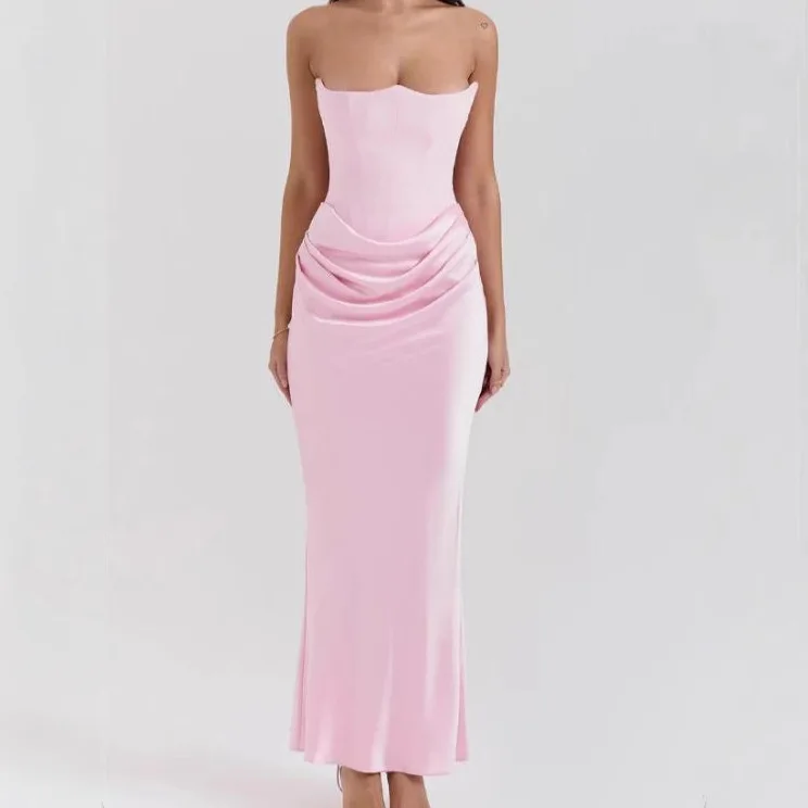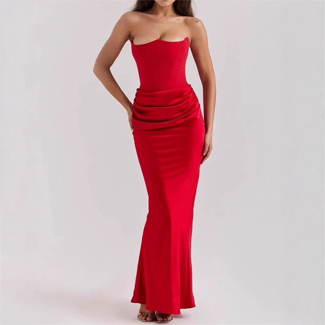 2026 New Sexy Solid Color Strapless Backless Dress Women Sleeveless Pleated Waist Slimming Long Vestidos Lady Evening Party Gown