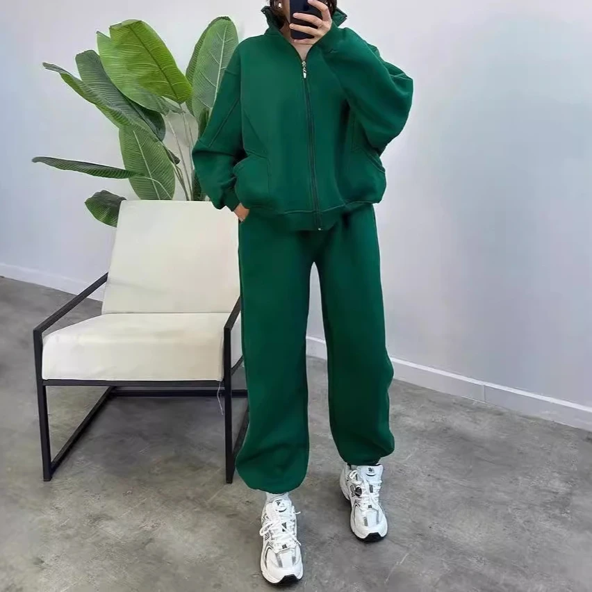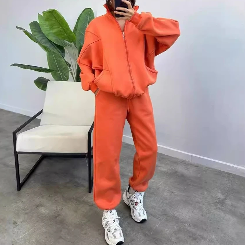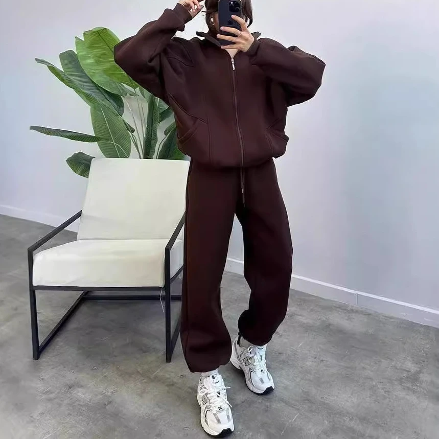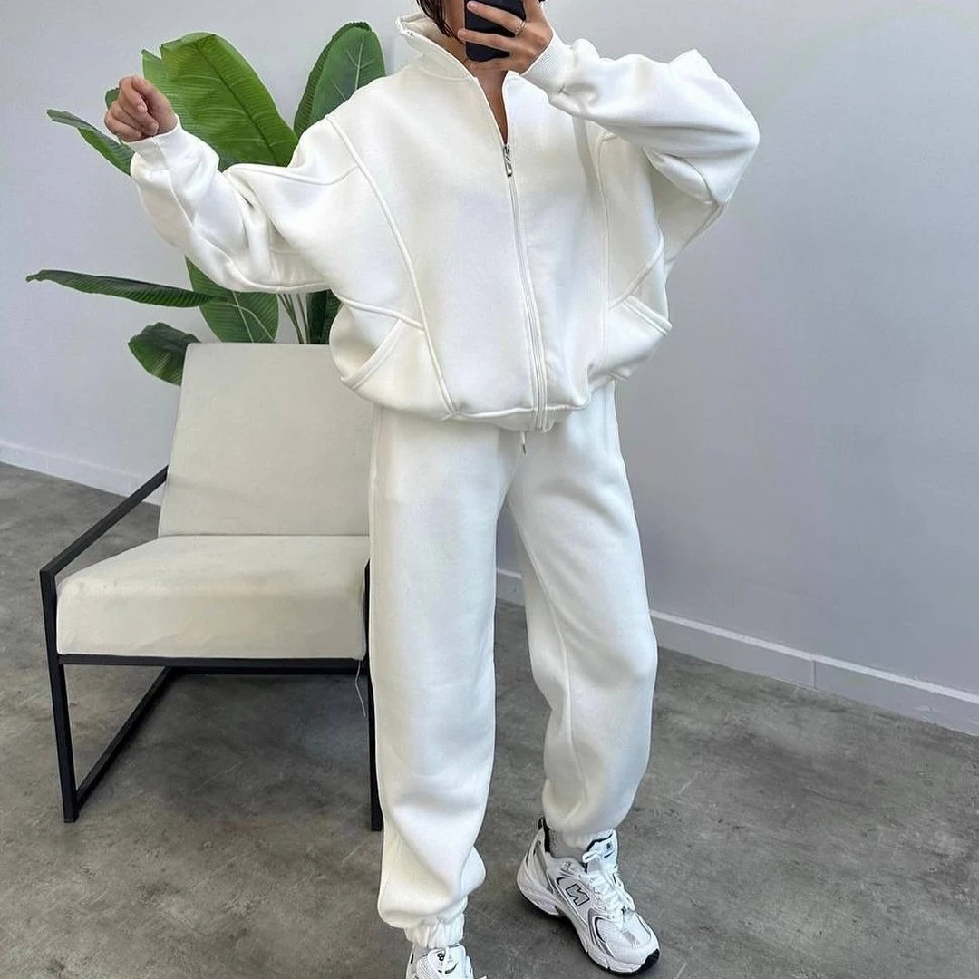 Autumn Winter Casual Sport 2 Piece Set Women Solid Loose Fit Two Piece Outfit T Shirt Tops Jogger Pants Suit Women Tracksuit Set