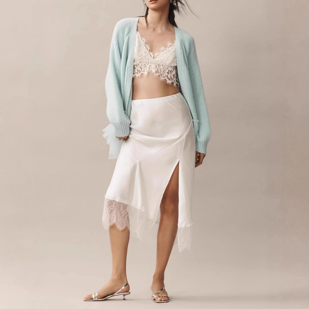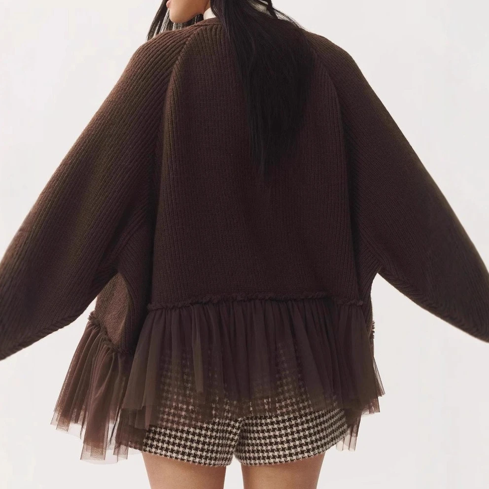 2026 Autumn Winter New Lace Hem Knitted Cardigans Elegant Casual Commuting Overcoat Ladies Solid Color Loose Warm Sweater Coat