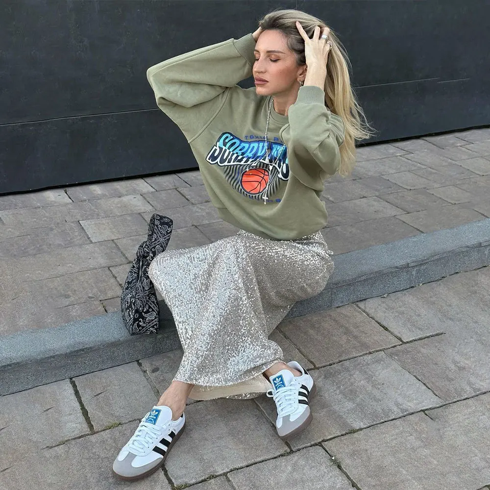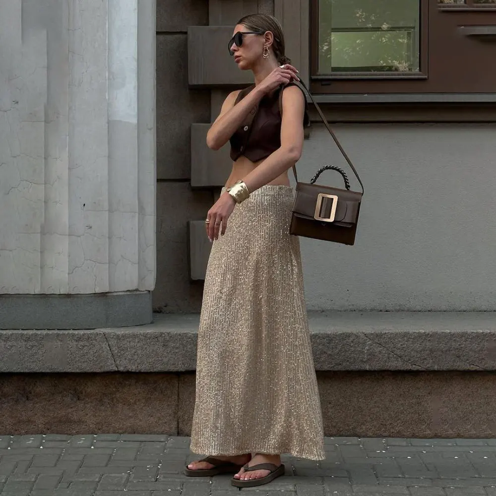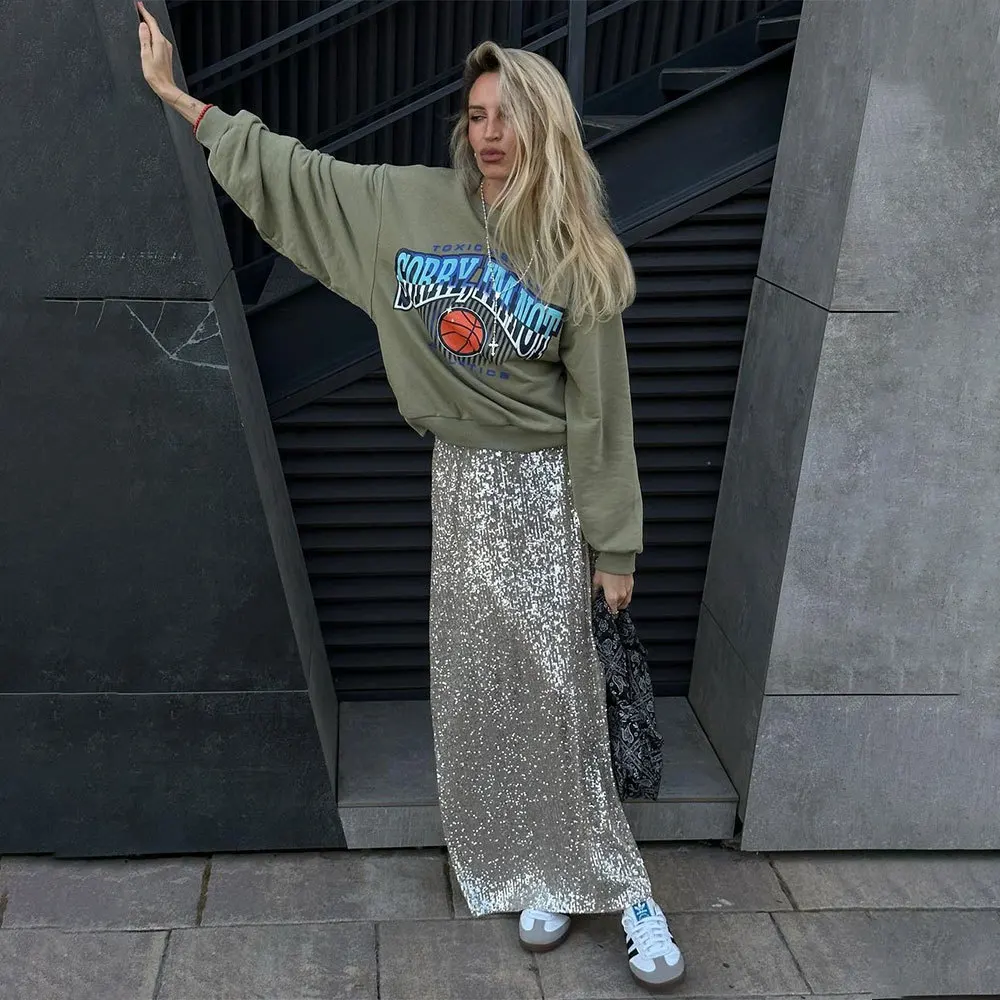 Women Fall Winter New Solid Sequins Trumpet Skirt High Waisted Slim Elegant Korean Casual Fashion Shiny Skirts Y2k Party Skirt