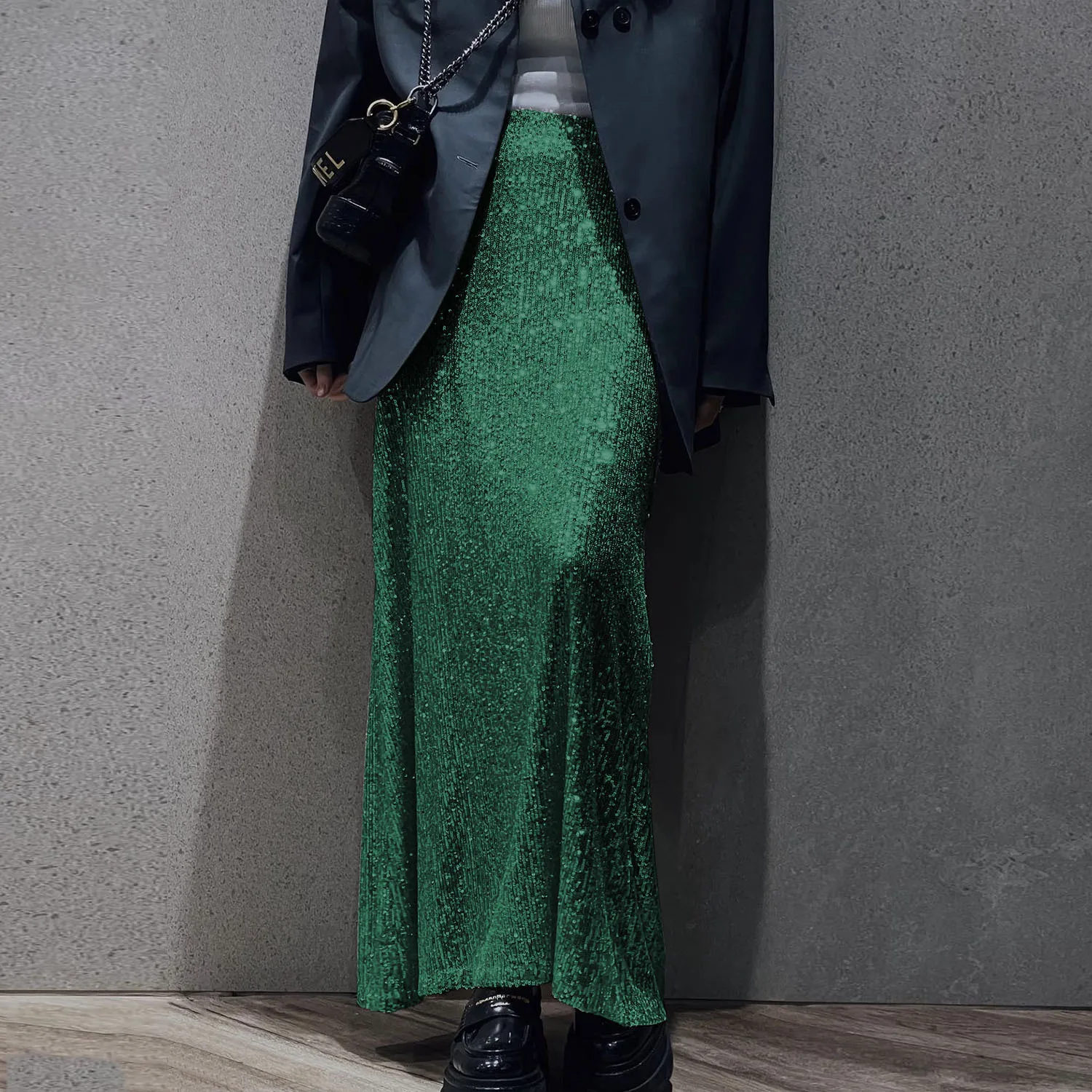 New S-3XL Summer Fashion Sparkle Women Long Skirt Glitter High Waist Loose Elegant Club Long Skirt Sequin Female Sexy Maxi Skirt