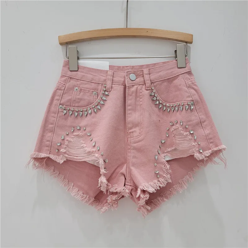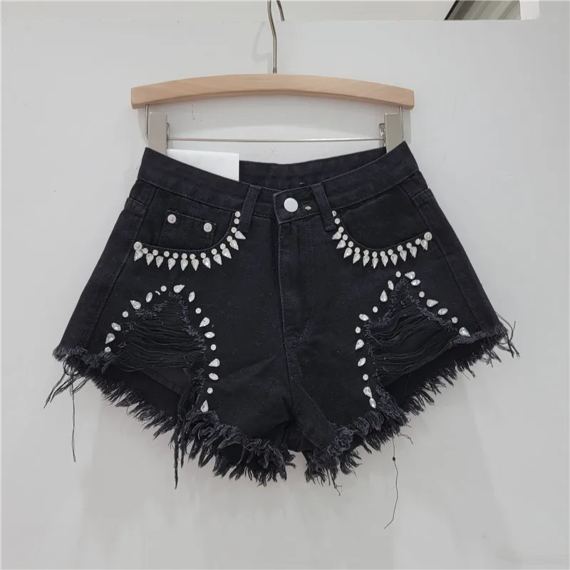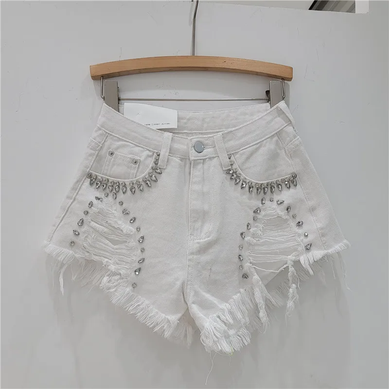 2024 Summer Elegant Shorts Lady Tassel Beading High Waist Wide Leg Denim Shorts Female Casual Shorts Jeans for Women Clothing