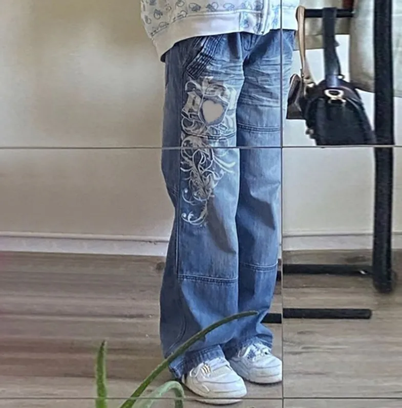 2025 Spring Autumn New Printed Baggy Y2K Jeans Oversize Wide Leg Baggy Pants Casual Cargo Trousers Women's Low Waist Jeans