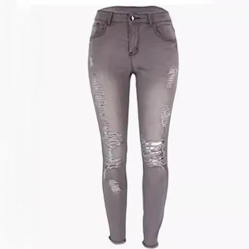 Women Stretch Ripped Distressed Skinny High Waist Trousers Ladies Spring Autumn Wear Casual Jeggings Shredded Jeans Denim Pants