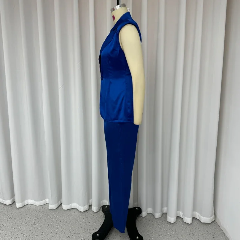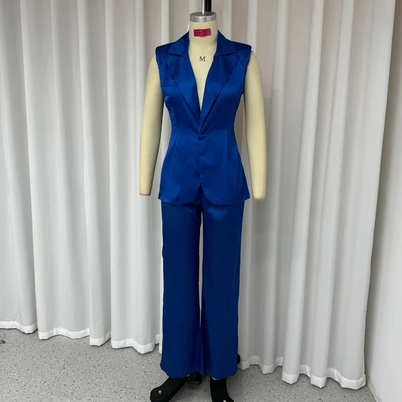 2025 Summer Office Lapel V Neck Sleeveless Backless One Button Solid Vest Top Loose Pants Suit High Streetwear Women's Sets