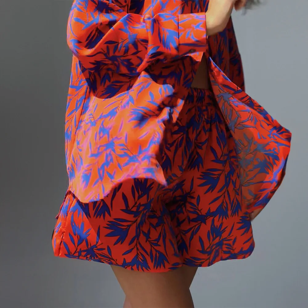 Summer Stylish Printing 2 Pieces Sets High Waist Shirt and Short Pants Fashion Y2K Suit Set Casual Women Two Piece Short Sets