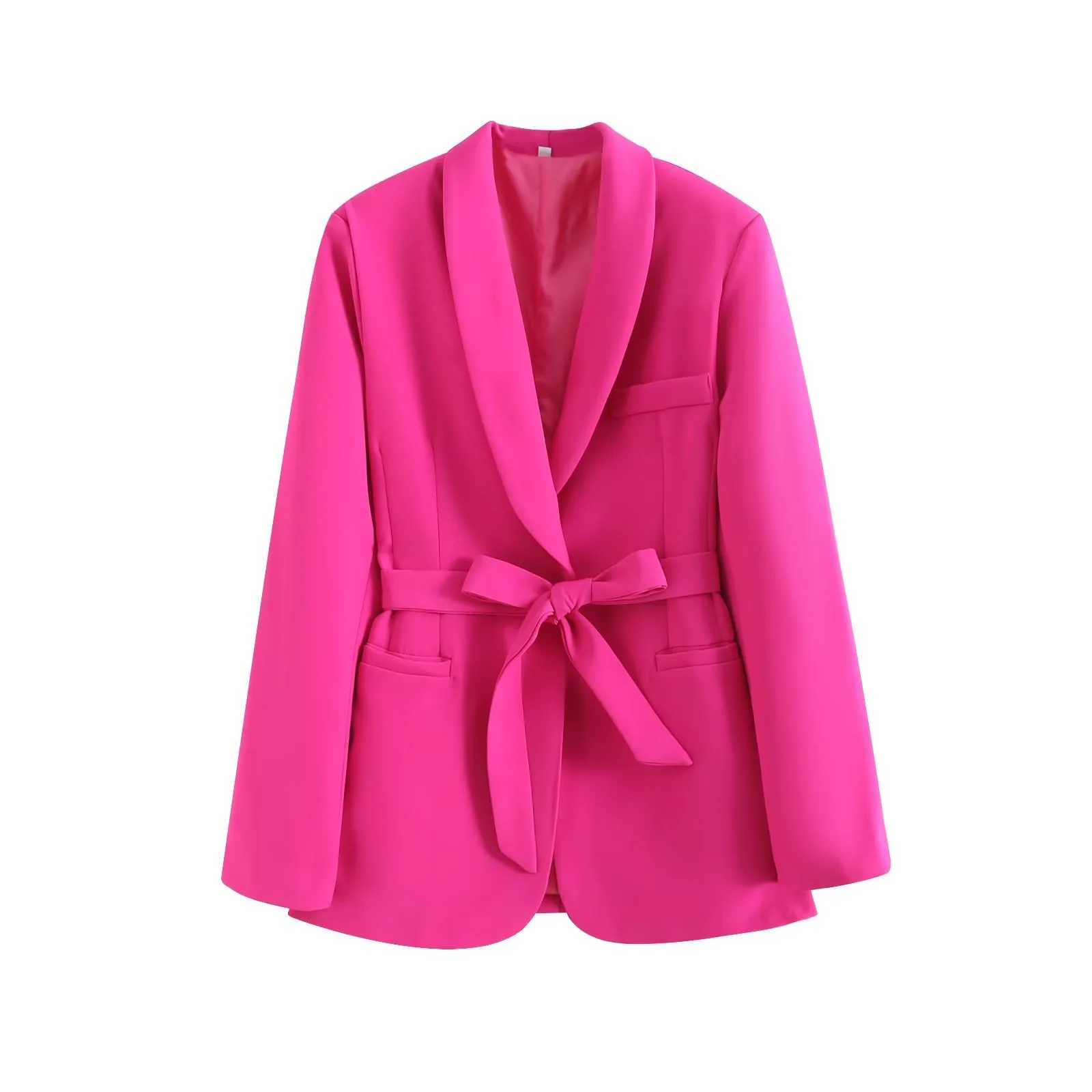 New Female Chic Set Lapel Long Sleeve Slim Jacket Coat High Waist Vertical Straight Leg Pants Woman's Bow Belt Blazer Pants Suit