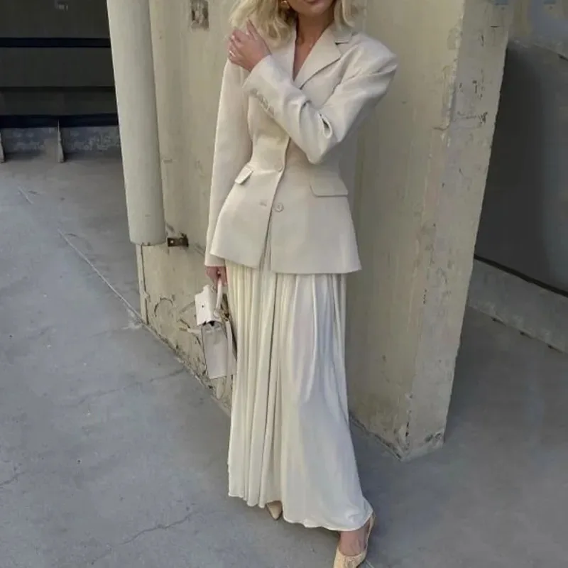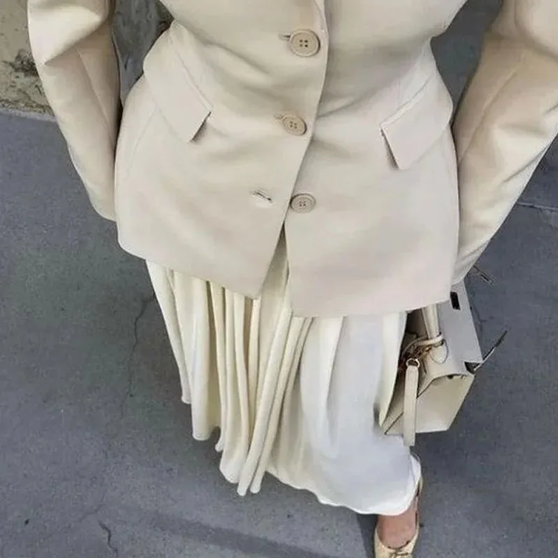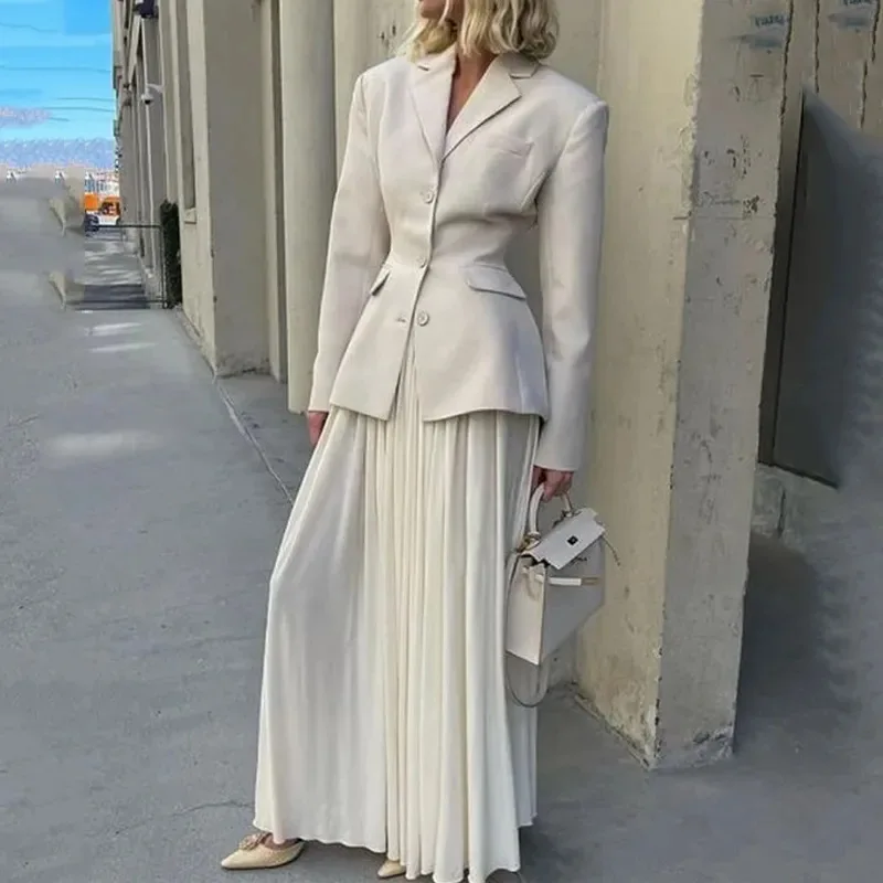 Wholesale Female Solid Chic Elegant Set Lapel Long Sleeve Blazer High Waist Spliced Pleated Skirt Two Pieces Sets for Women