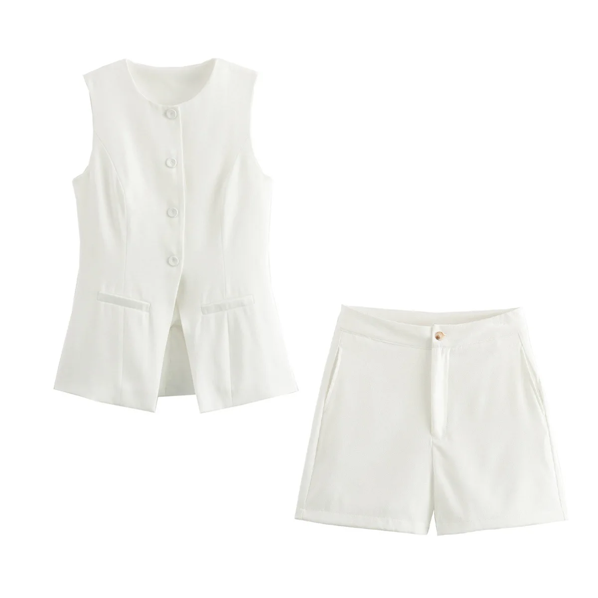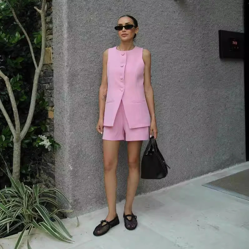 2025 Summer Women's Suit O-Neck Long Vest Mini Shorts Sets for Women 2 Pieces Elegant Outfit Lady Shorts Two-piece Set