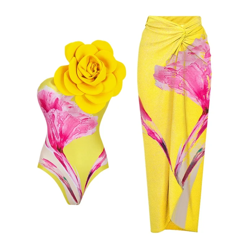 2024 New Flower One Piece Swimsuit Belt Beach Wear Summer Suits Luxury Women Swimwear Monokini Bodysuit Bathing Suit Swim Suits