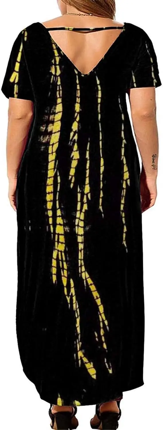 Women's Plus Size Casual Maxi Dress XL-5X Loose Pocket Short Sleeve Slits Chiffon Fabric Natural Summer Dress Digital Woven