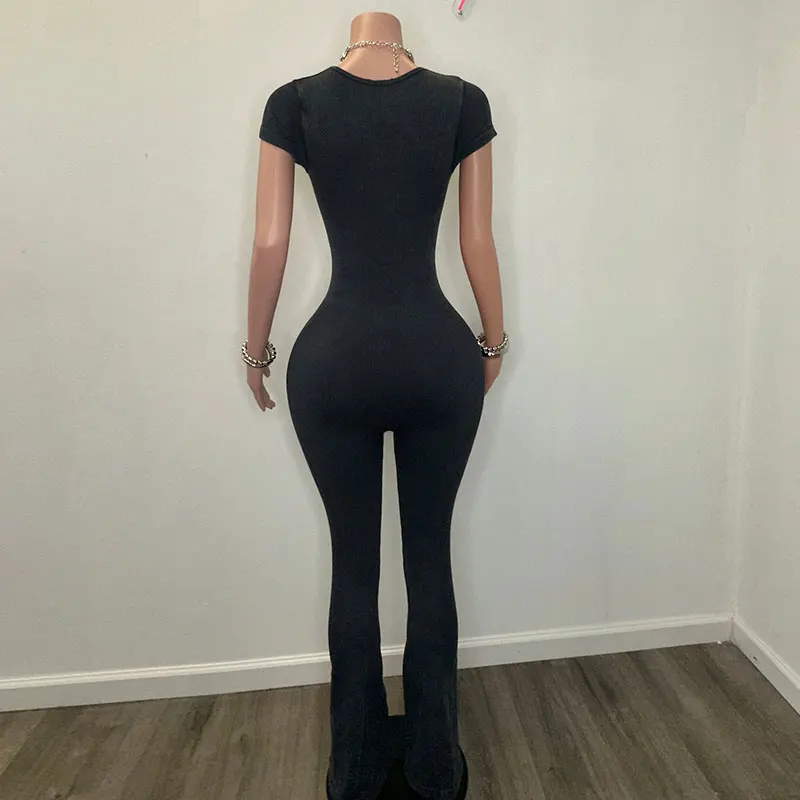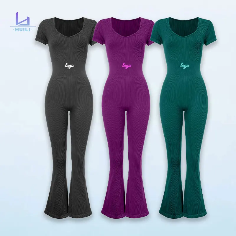Huili Manufacturer Oem Shorts Sleeve Gym Fitnness Clothes Activewear Jumpsuit Knitted Black Women Sports Bodysuits&jumpsuits
