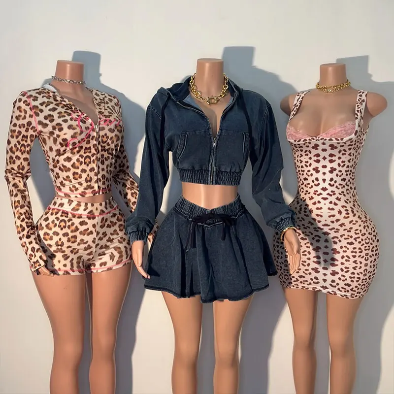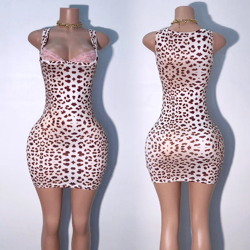 Huili Manufacturer Oem Women's Sleeveless Lace Patchwork Slim Fit Stretch Shorts Dress Custom Print Leopard Skinny Mini Dress