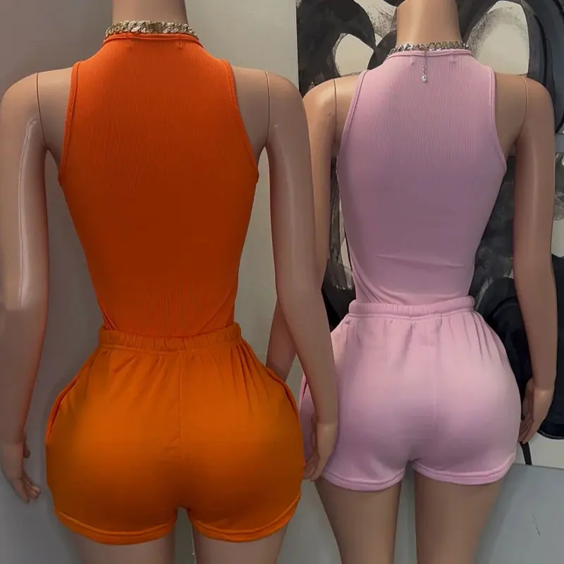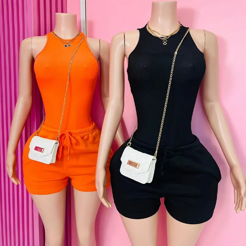 Soft Breathable Cotton Lounge Wear Women Ribbed Top & Hot Shorts Pajama Outfit Suit Custom logo Two Piece Summer Loungewear Sets