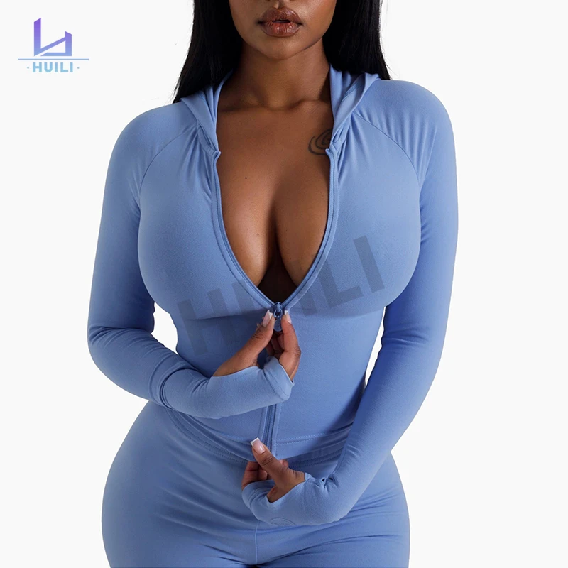 Women Designs Daily Outdoor Matching Set Custom Logo Sport Skinny Two Pirece Hooded Crop Top and Legging Running Yoga Suit