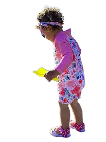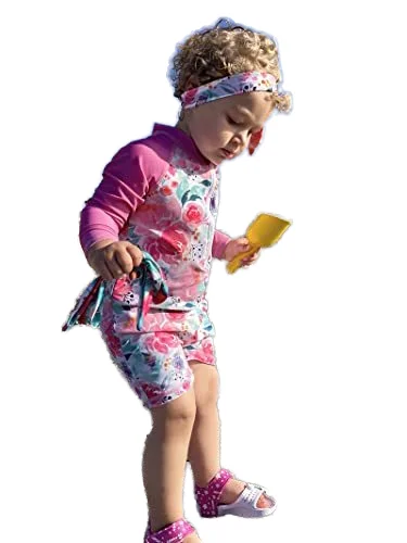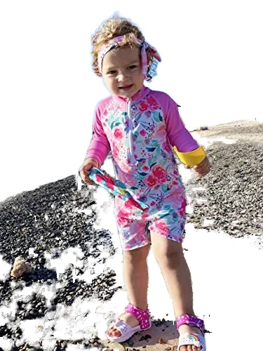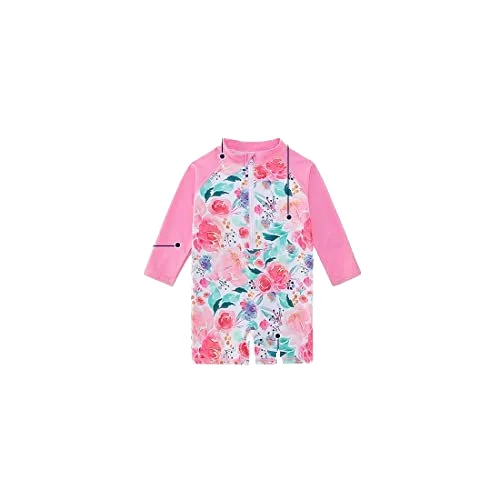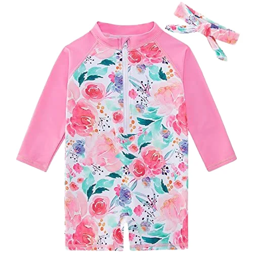 Custom 2T Pink Floral Pattern One-Piece Long-Sleeved Sun Protection Swim Suit Baby Girls Cute Style Breathable Backless Zippers