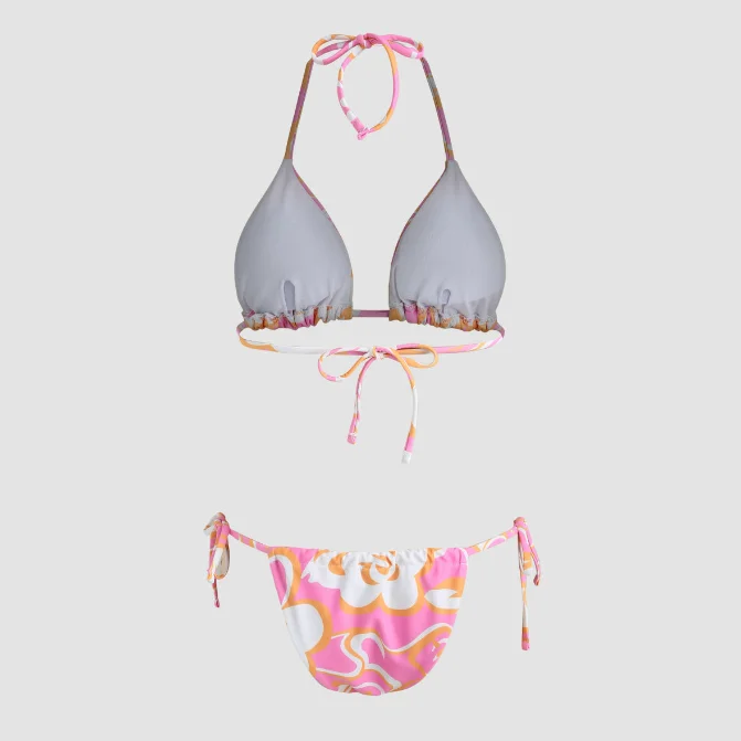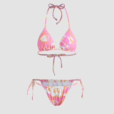 Manufacturer Wholesale Customized Floral Striped Print Scoop Neck Bikini Breathable Comfortable Spandex/Nylon Fabric 2-Piece