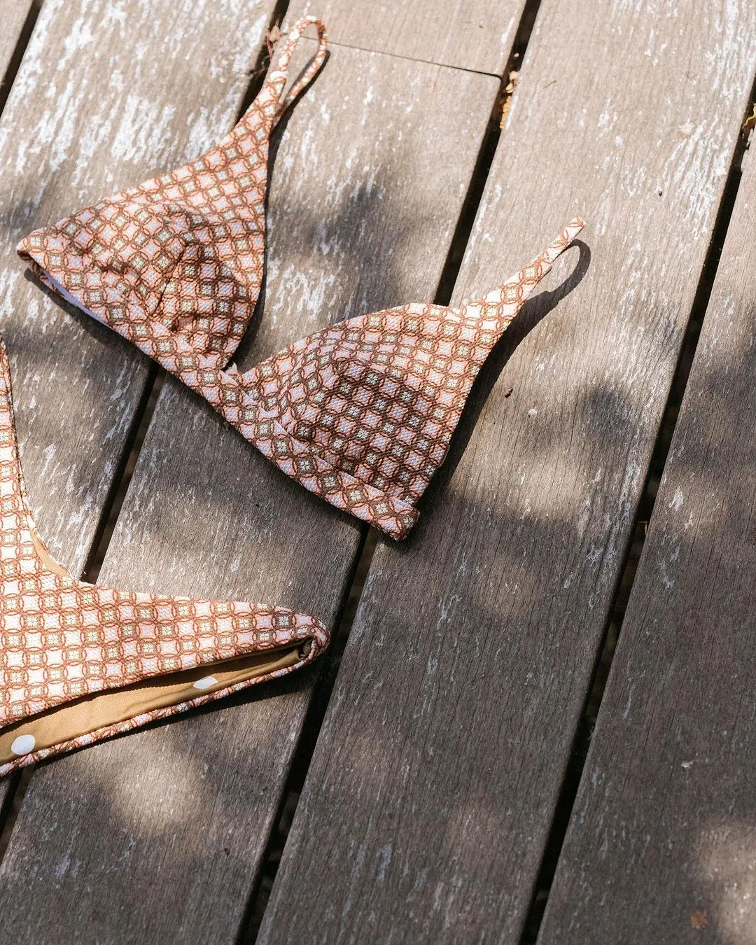 Custom Pattern Print 2 Piece Set Scoop Triangle Bra Bikini Swimwear Front Spandex/Polyester Quick Dry Breathable for Women