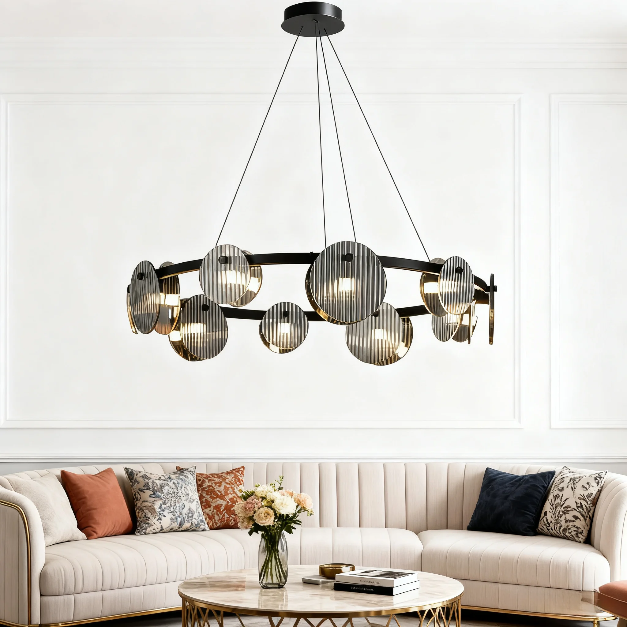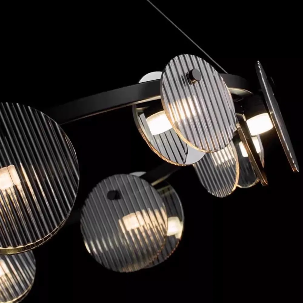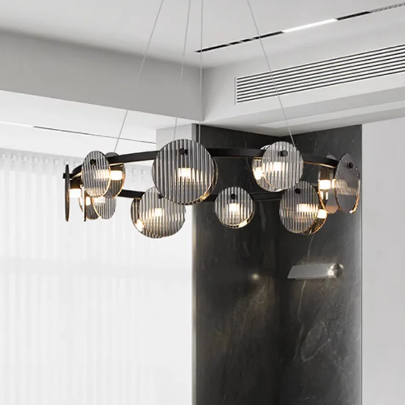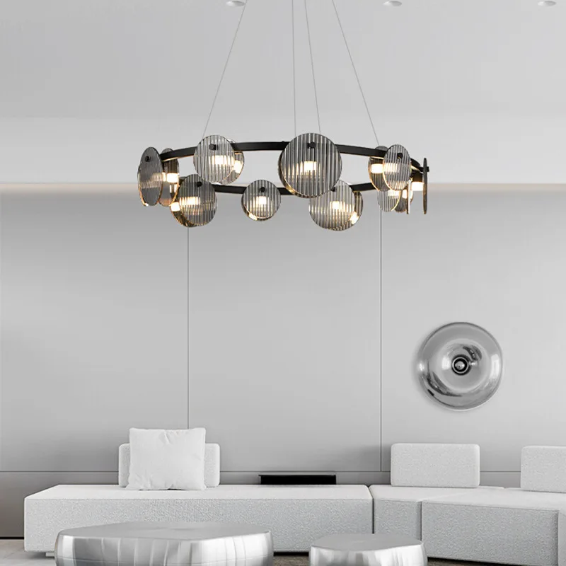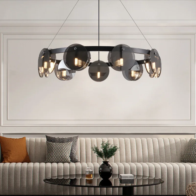 JACKSUN Italian Minimalist Modern Simple Nordic Design Ring Chandelier Iron Light Luxury Living Room Middle Glass Pendant Light