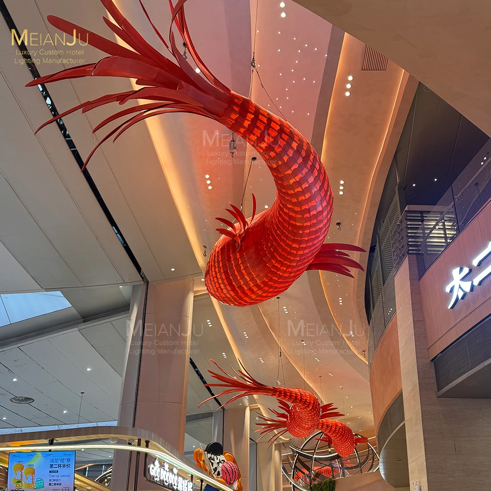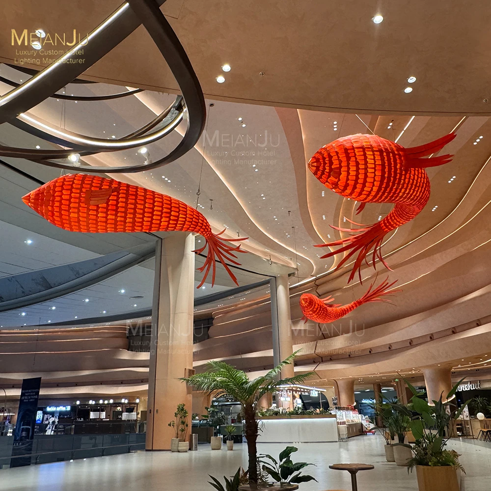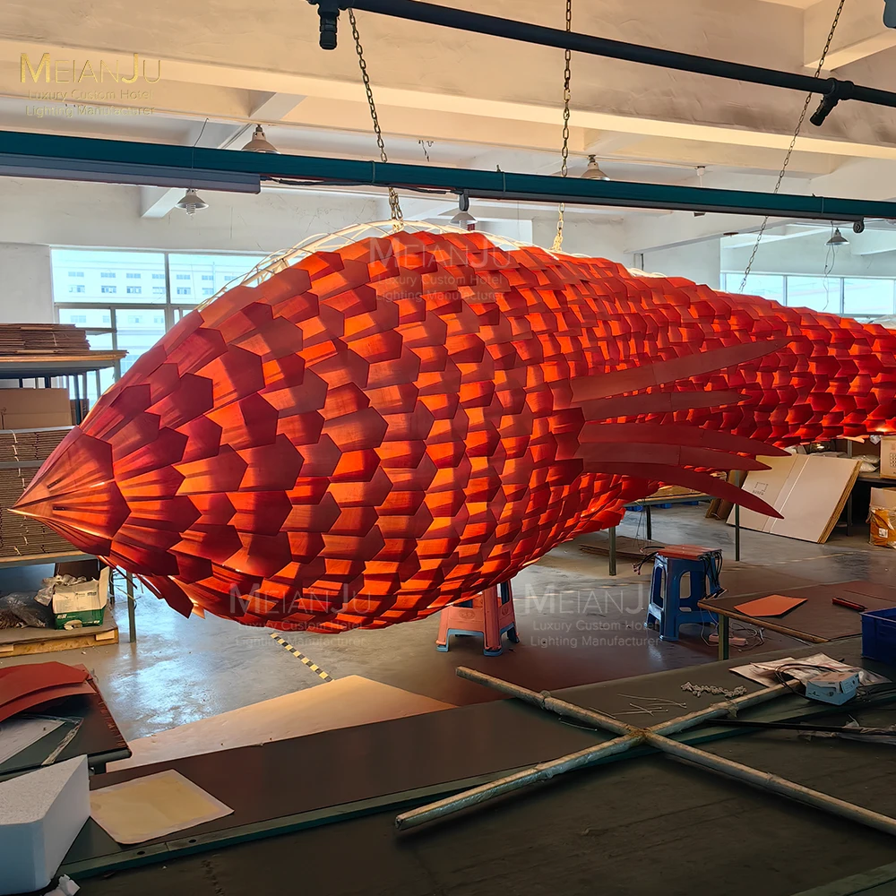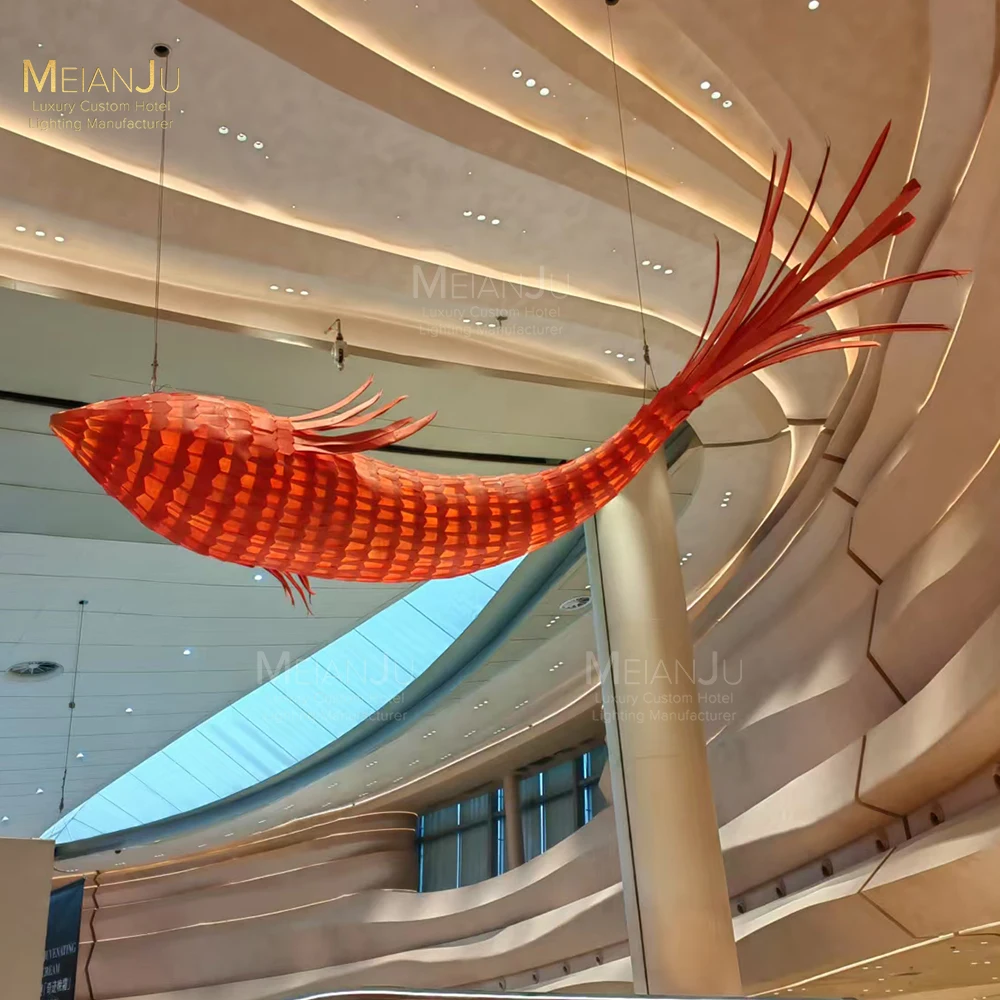 Modern Custom Red Fish Shape Indoor Decorative Oval Chandelier for Hotel Villa Home Dining and Living Room-Unique Design