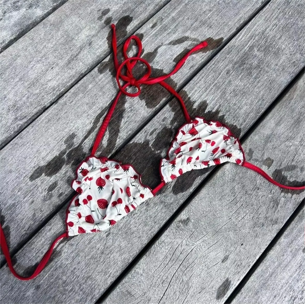 Printed Swimsuit 2025 Custom Bandeau Triangle Women Bikinis & Beachwear High Waist Two Piece Swimwear Red Micro Bikini Sets