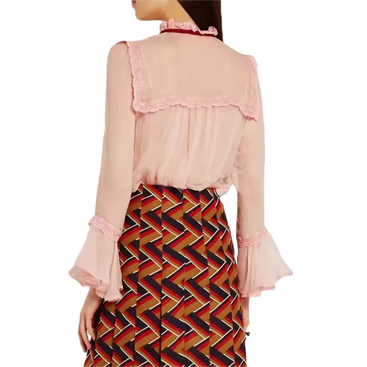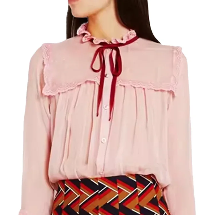 Custom High Quality Spring Autumn Causal Chiffon Fabric Soft Double Sided Long Sleeve Ladies Blouses and Tops