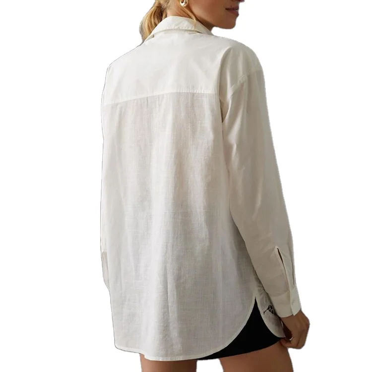 Custom High Quality Spring Autumn Causal Long Sleeve Loose Blouses Top Elegant Beautiful Embroidery Casual Shirts