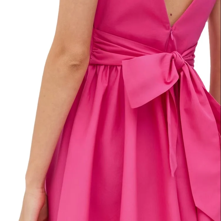 Custom High Quality Summer Causal Color Dress for Women Solid Pattern Square Collar Sleeveless Breathable Pleated Skirt Dresses