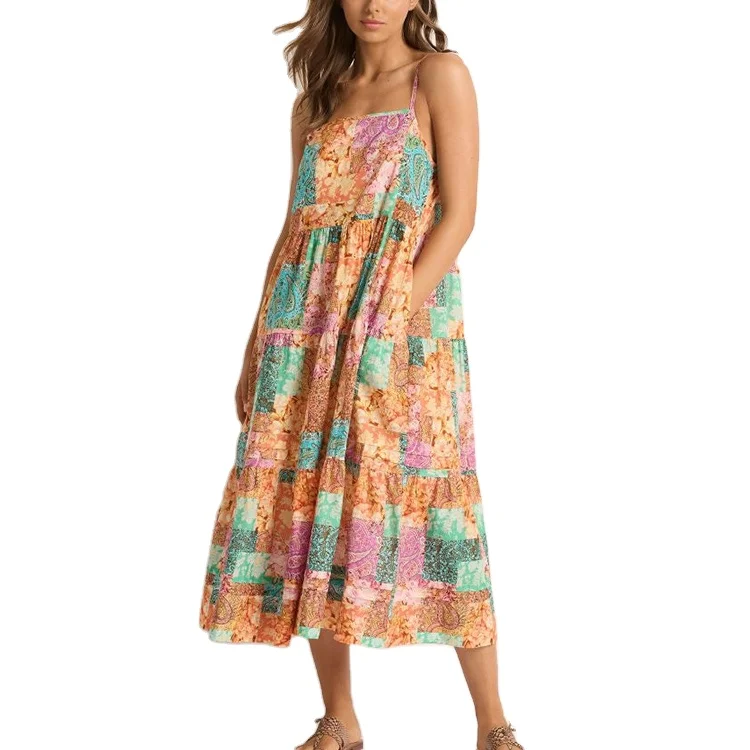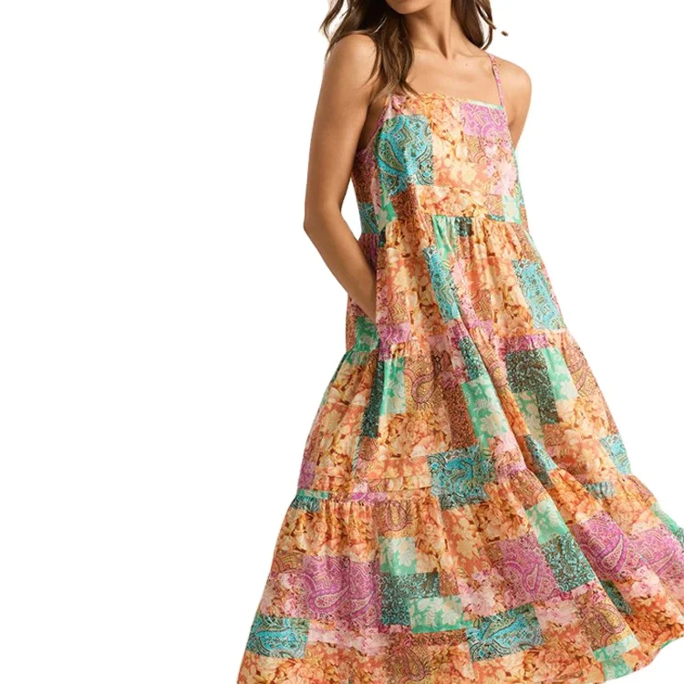 Custom High Quality Summer Causal Elegant Sleeveless Floral Pattern Dress Maxi Dress Digital Printing Long Rayon Hawaiian Dress