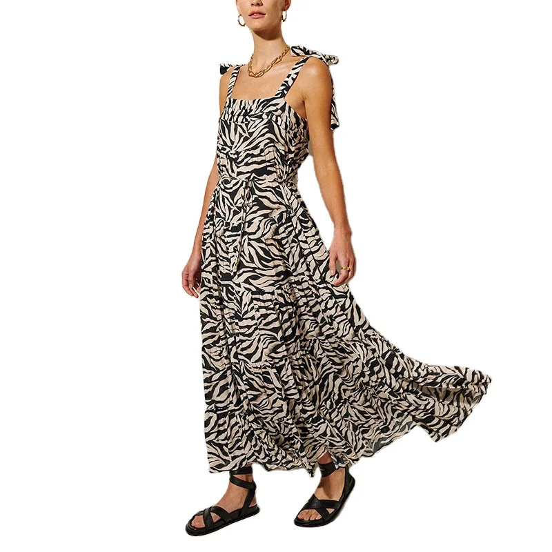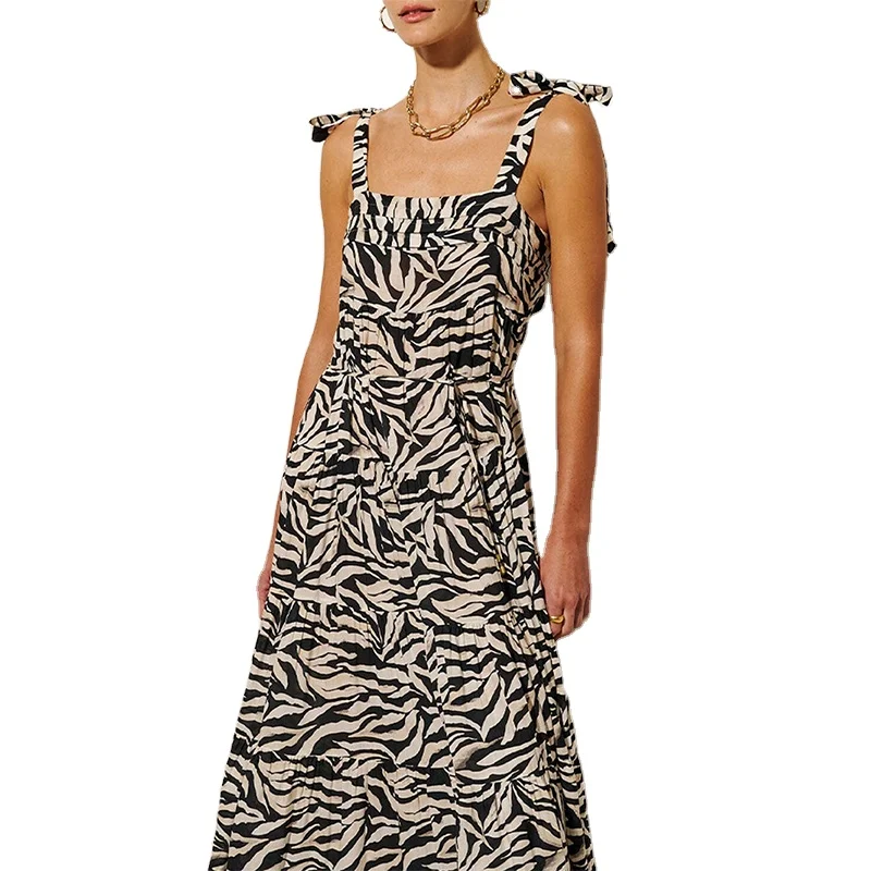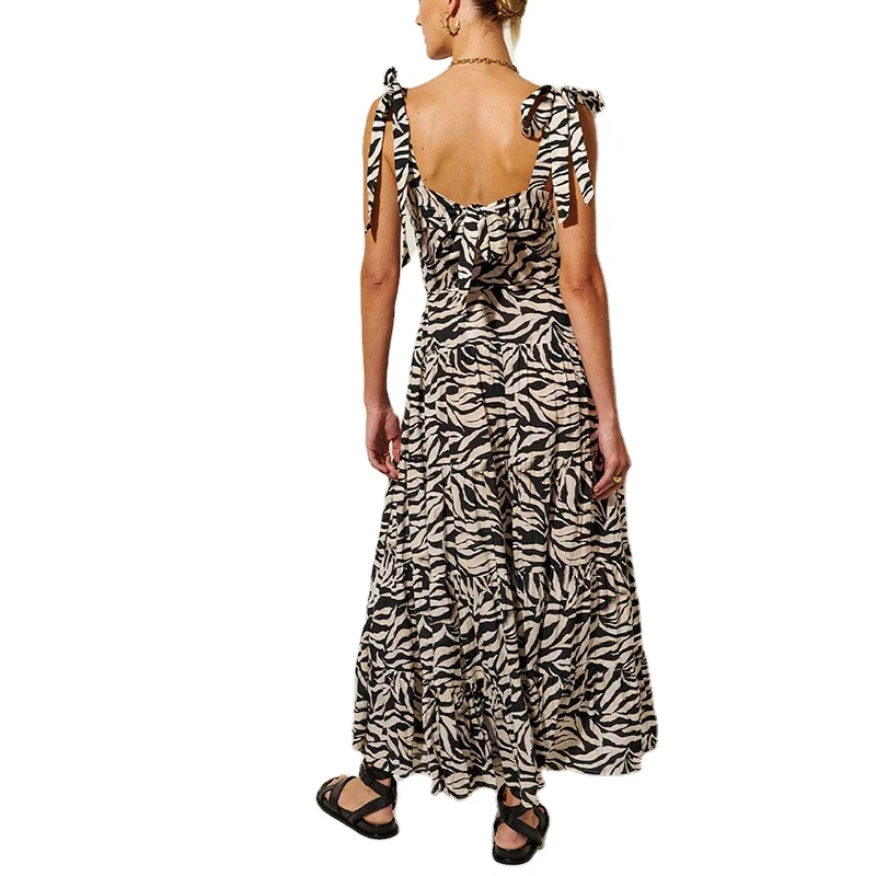 Custom High Quality Summer Causal Dress Long Adjustable Shoulder and Waist Ties Women Maxi Dresses Bulk Clothes