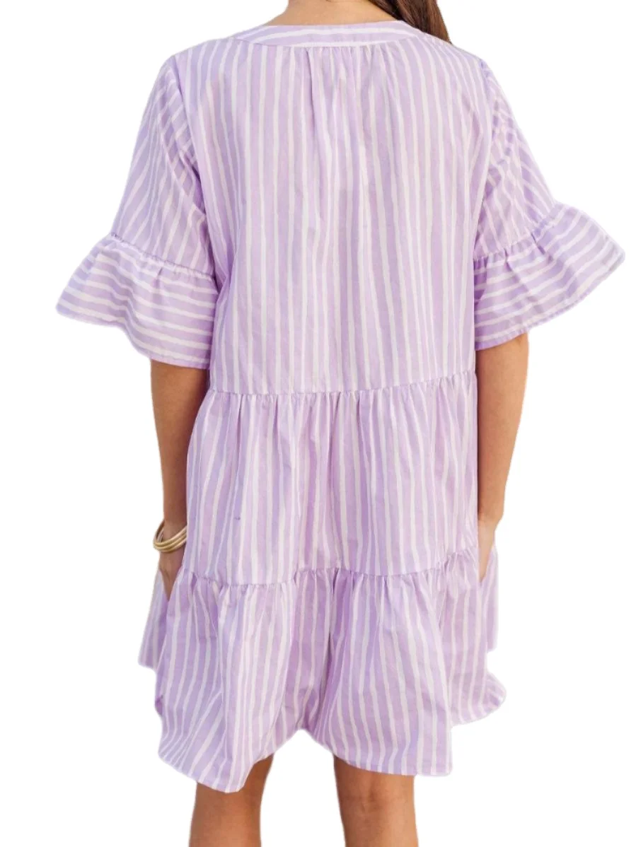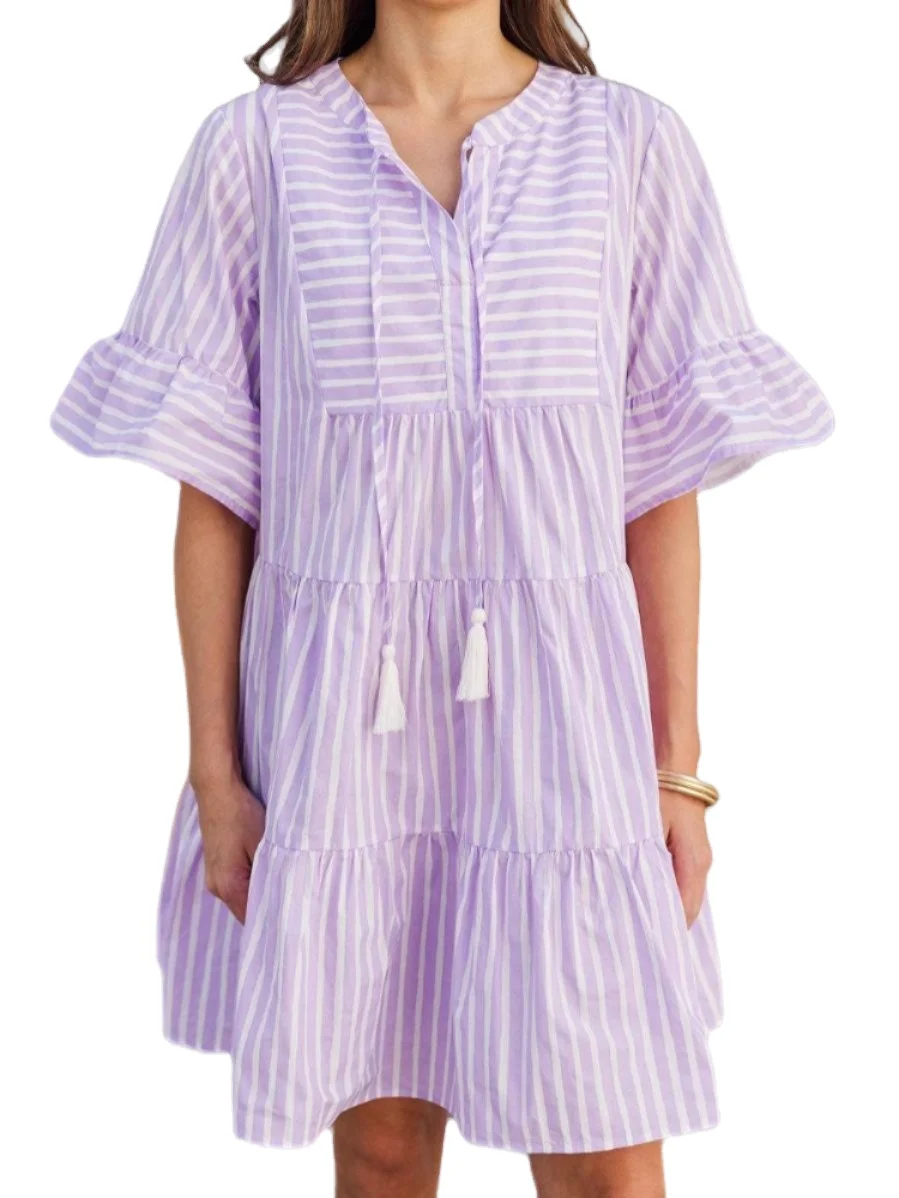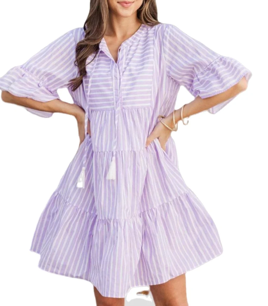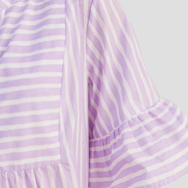 Custom High Quality Summer Causal Dress Bohemian Striped Dress for Women Casual Style Natural Bell Sleeve Woven for Daily