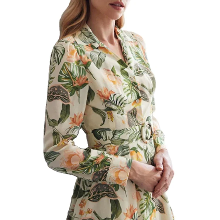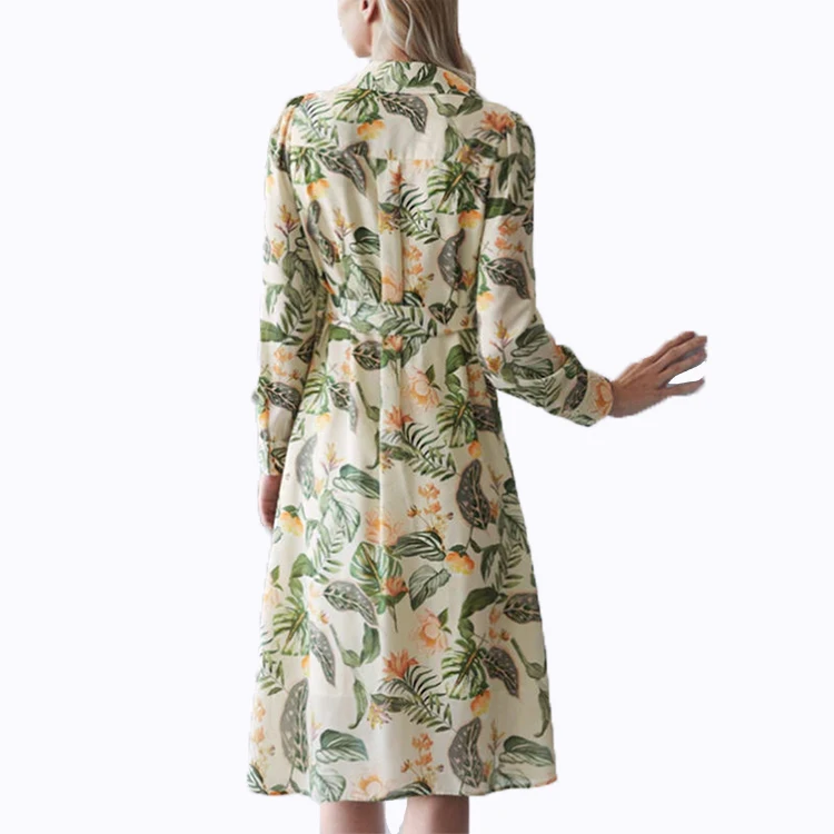 Custom High Quality Spring Summer Ladies Summer Polo V Neck Print Elegant Bohemian Long Sleeve Casual Midi Shirt Dresses