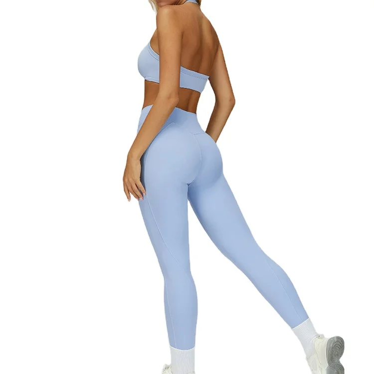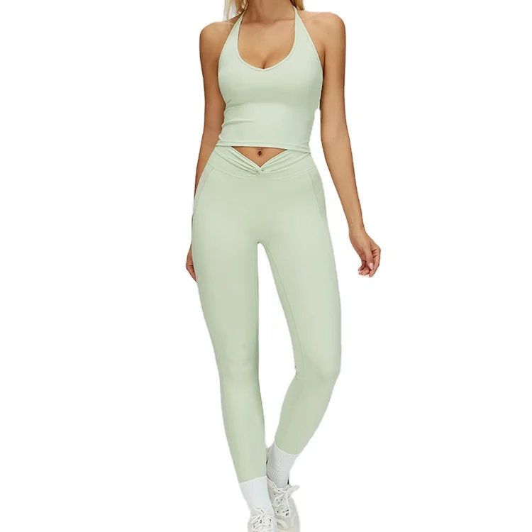 Custom High Quality V Nect Vest 4pcs Athletic Sets Girls High Stretchy High Waist Leggings Gym Fitness Suits Yoga Wear Set