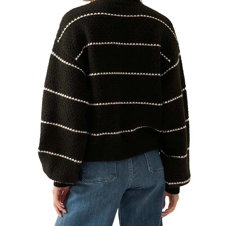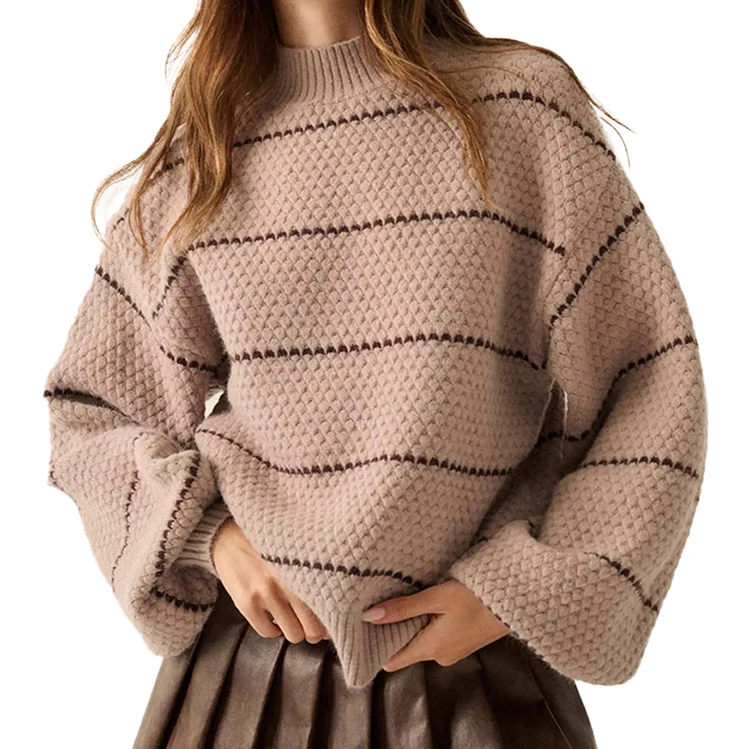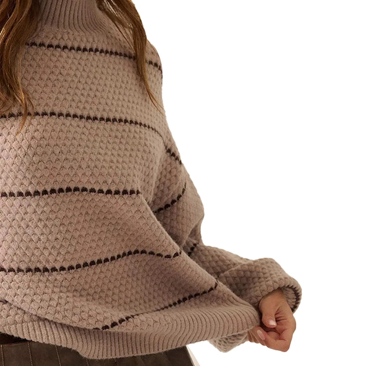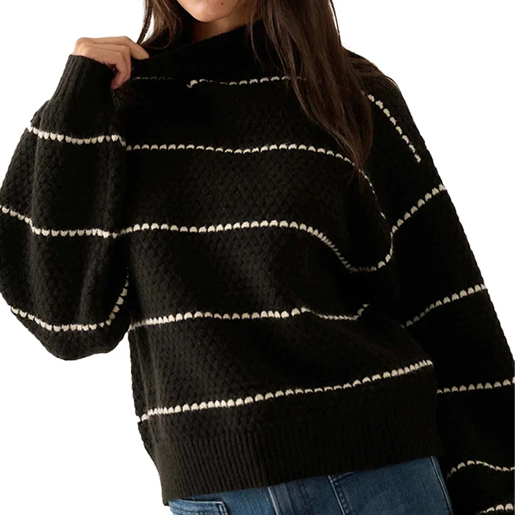 Custom High Quality Spring Autumn Women's Knit Sweater Mock Neck Striped Pattern Office Casual Looks Daily Elegant Style