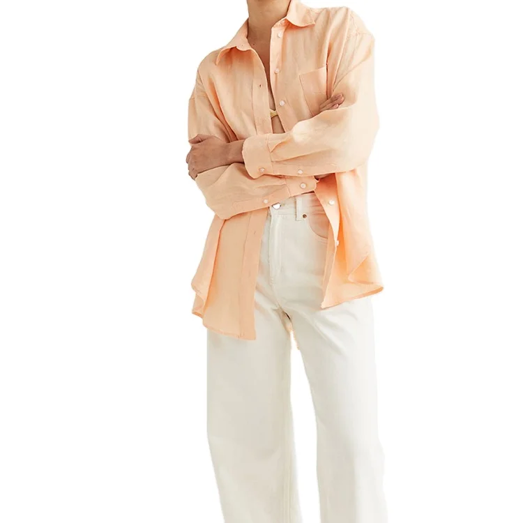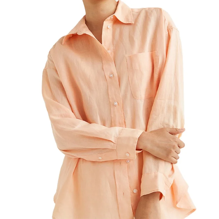Custom High Quality Spring Autumn Causal Button Down Dress Shirts Mandarin Collar Women's Classic-Fit Long Sleeve Down Shirt