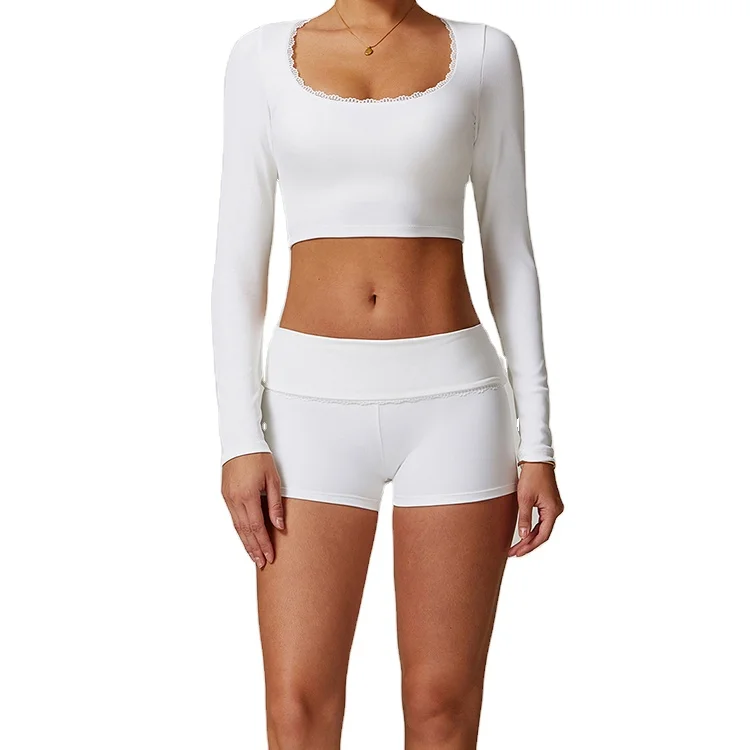 LANGHE Custom High Quality Quick Dry Gym Sport Wear Yoga Short Sports Gym Fitness Sets Clothes Set for Women
