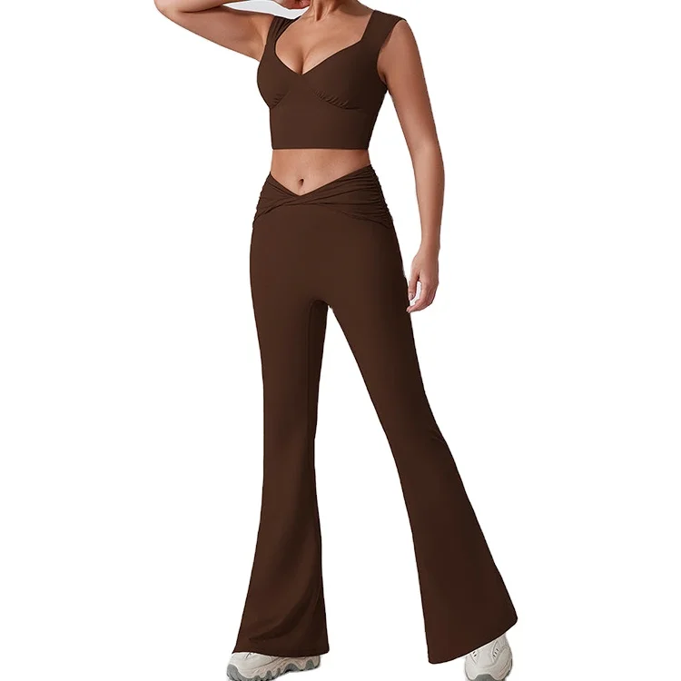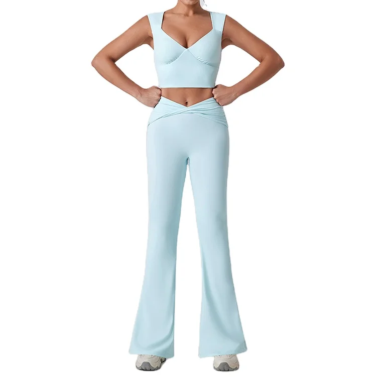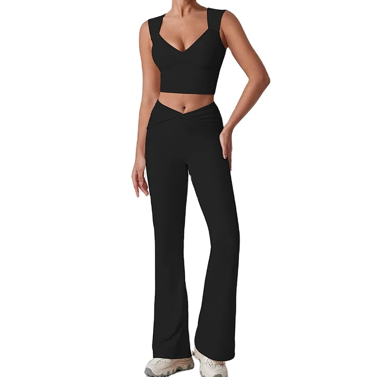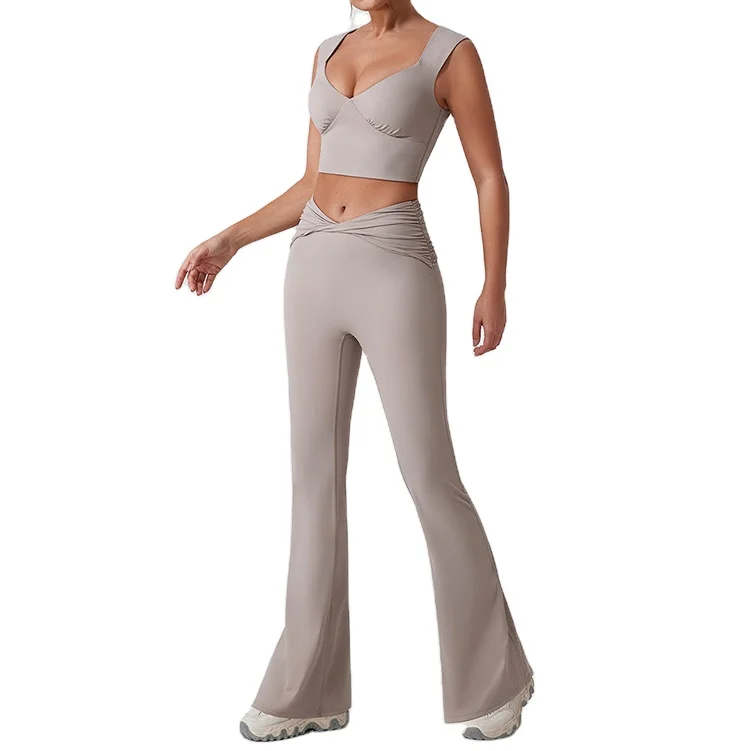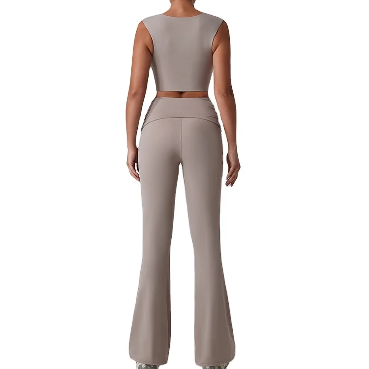 LANGHE Custom High Quality Quick Dry Yoga Gym Wear Quality Recycled Long Sleeve 2 Piece Fitness Sets for Women