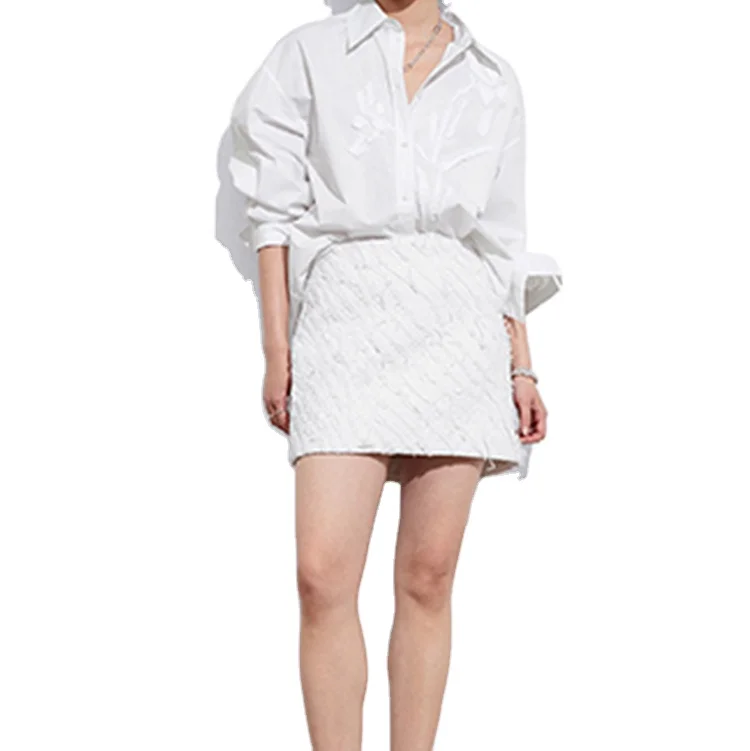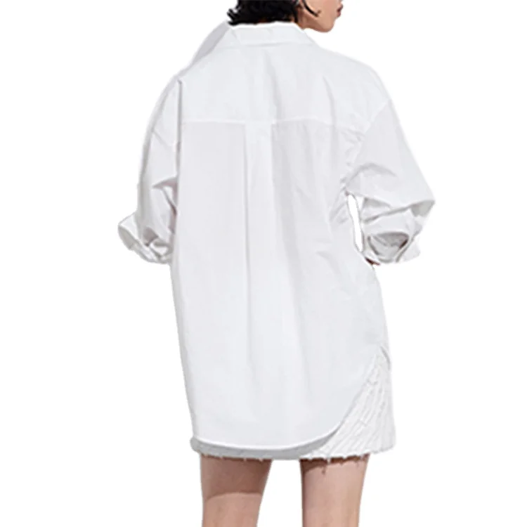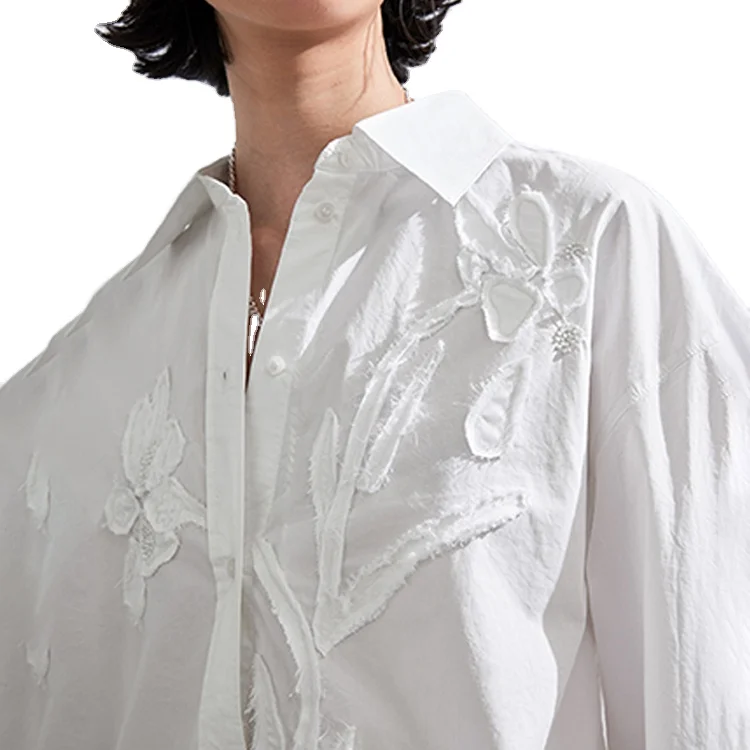 Custom High Quality Blouses & Shirts Versatile Elegant Office Cotton Shirt White Women Long Sleeves Simple Casual Shirt