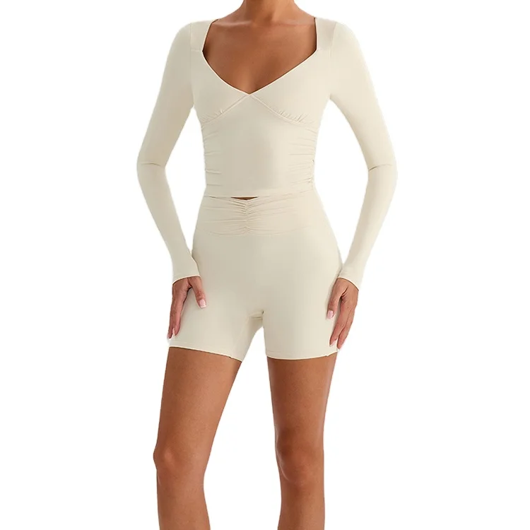LANGHE Custom High Quality Quick Dry Workout V Shape Gym Running Sport Shorts Set Wrinkled Casual Fitting Shorts Set