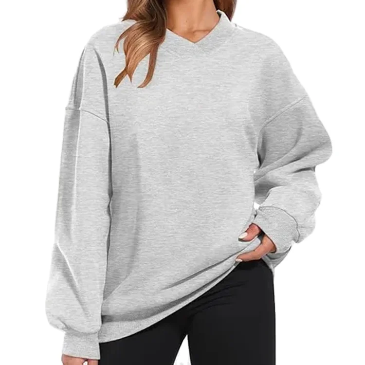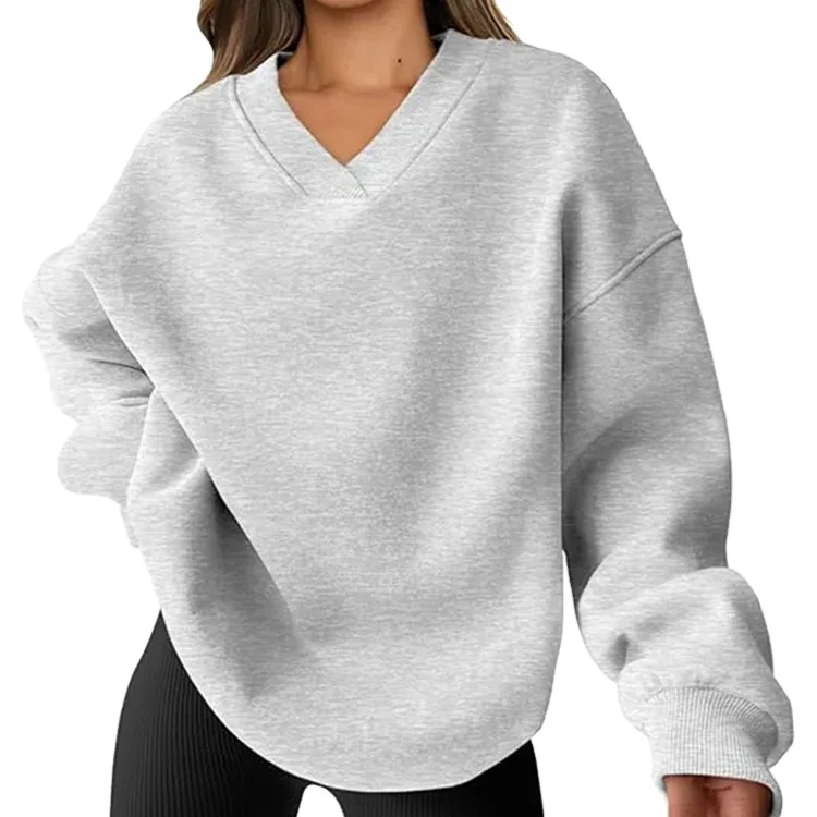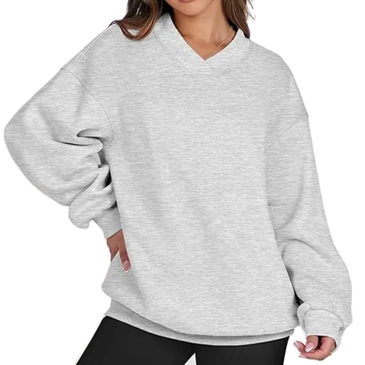 Custom High Quality Casual Oversized V Neck Sweatshirt Fleece Long Sleeve Sweatshirt Hoodies