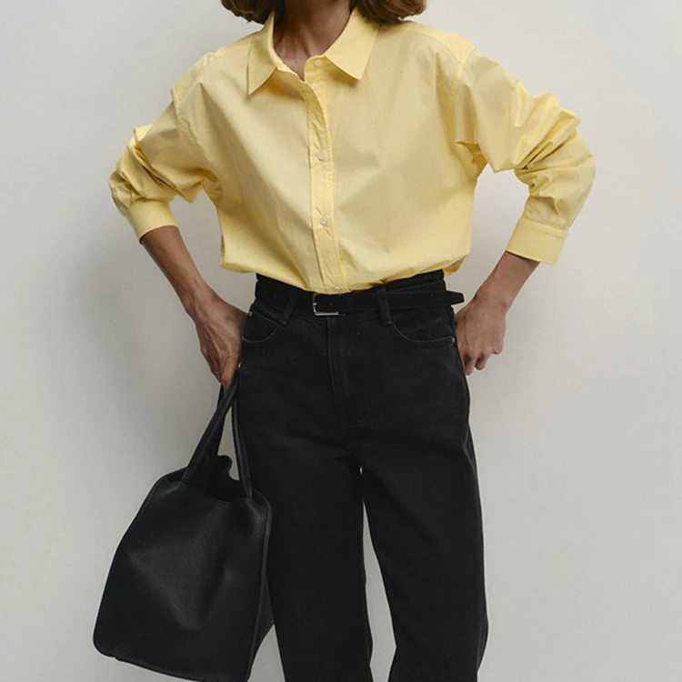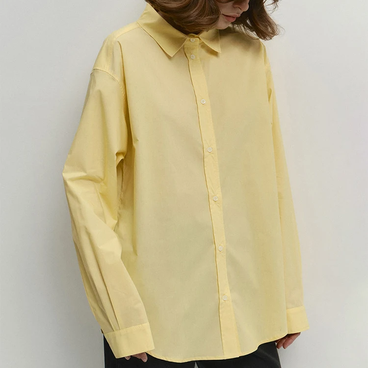 Custom High Quality Spring Summer Long Sleeve Cotton Loose Fit Office Lady Elegant Casual Woman Blouses Tops