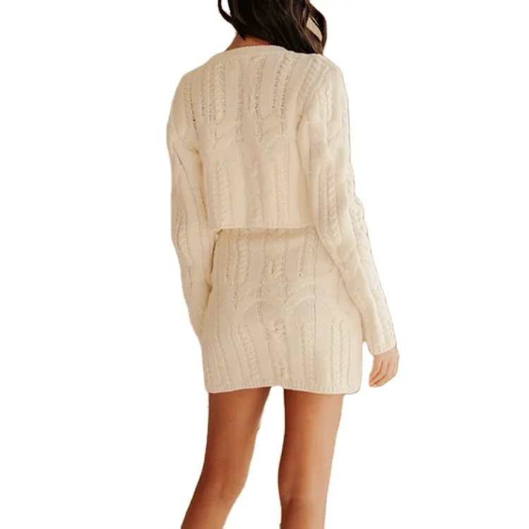 Custom High Quality Casual 2 Piece Knit Lounge Sets Spaghetti Strap Dress Above Knee Long Sleeve Short Cardigan