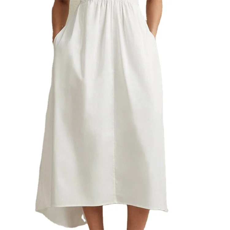Custom High Quality Summer Casual Elegant & Sexy Low Neck Hollow Out Halter Loose With Pockets White Linen Dress