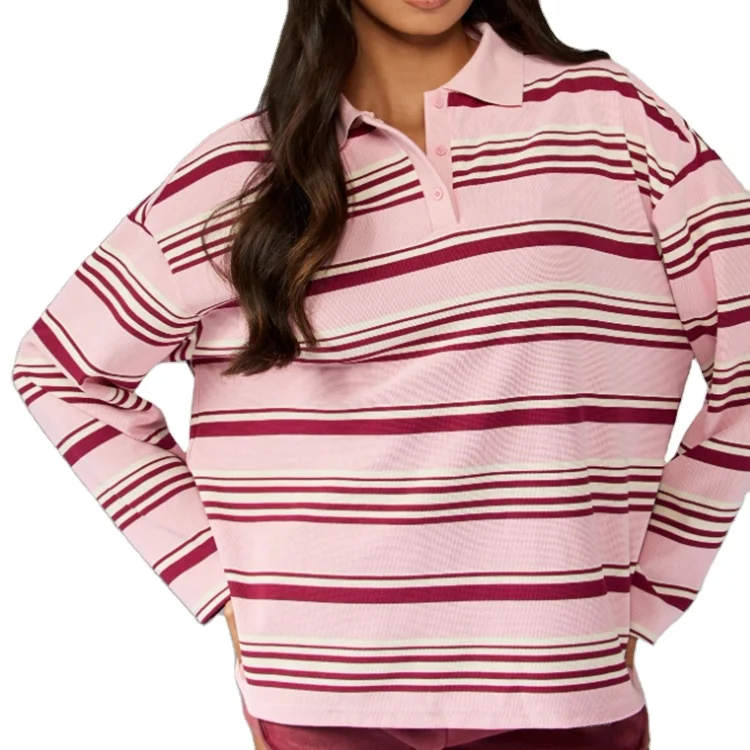 Custom High Quality Oversized Quick Dry Long Sleeve Button Stripe Pattern Casual Design Collar for Polo Style