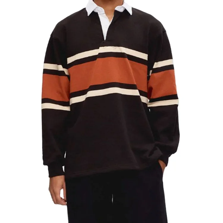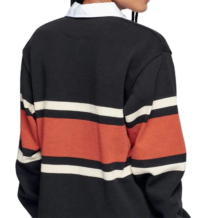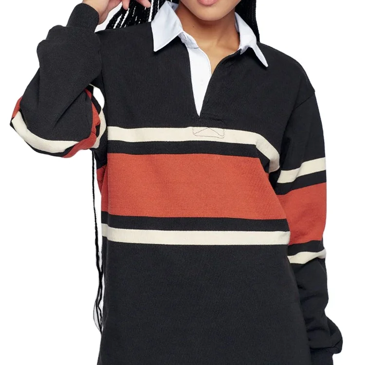 Custom High Quality Women Contrasting Color Striped Crew Neck Cotton Soft Tops Fashion Women Rugby Polo Shirt