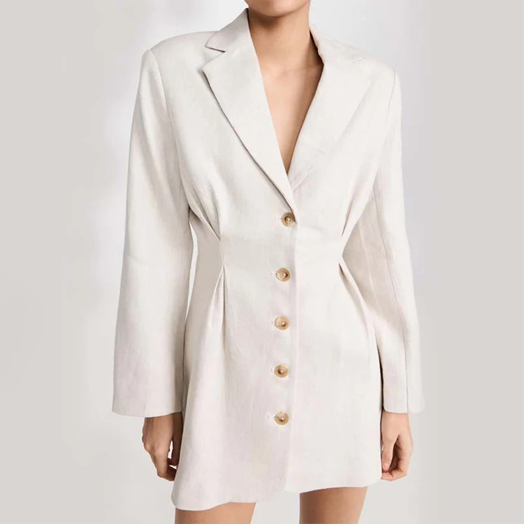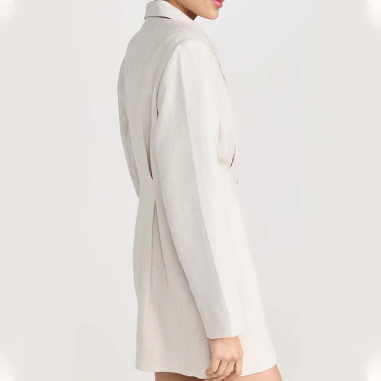 Custom High Quality Spring Fall Women Blazers Sexy Suit V-Neck Elegant Business Office Linen Mini Suit Dress