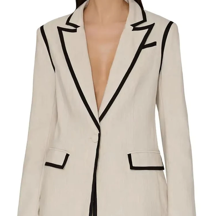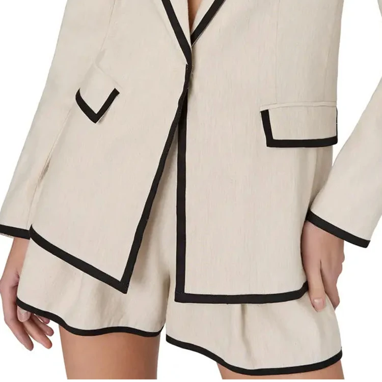 Custom High Quality Fall and Winter Black and White Contrast Collar Blazer Suit for Women Two Pieces Set