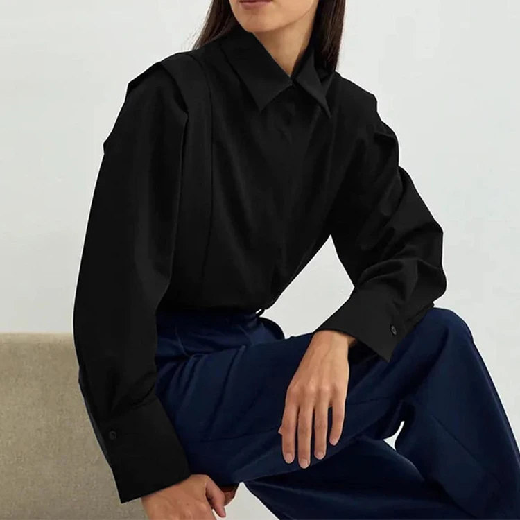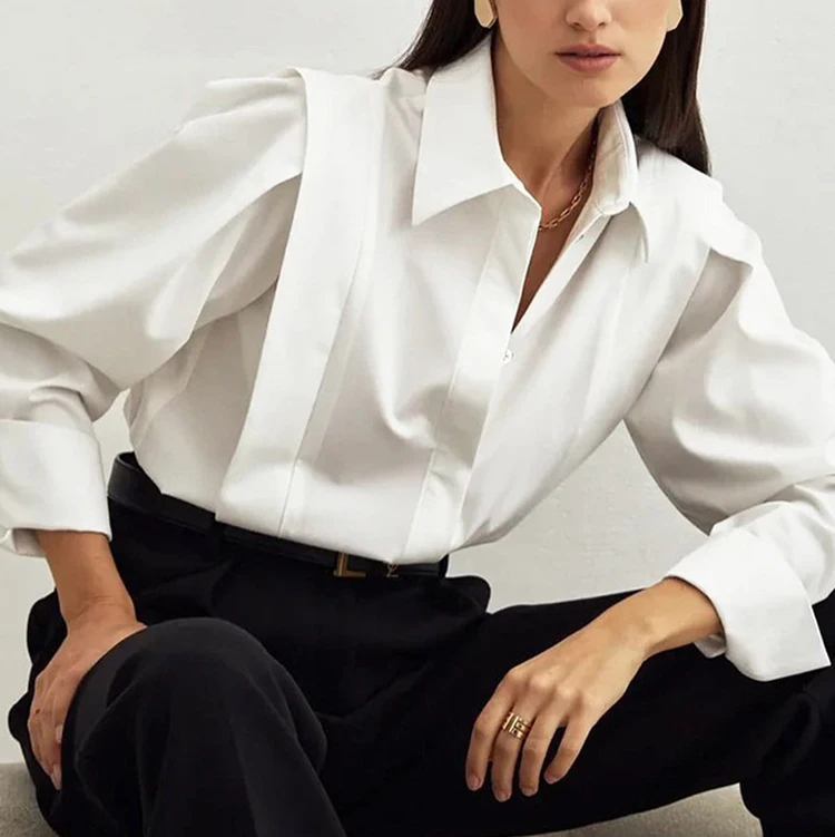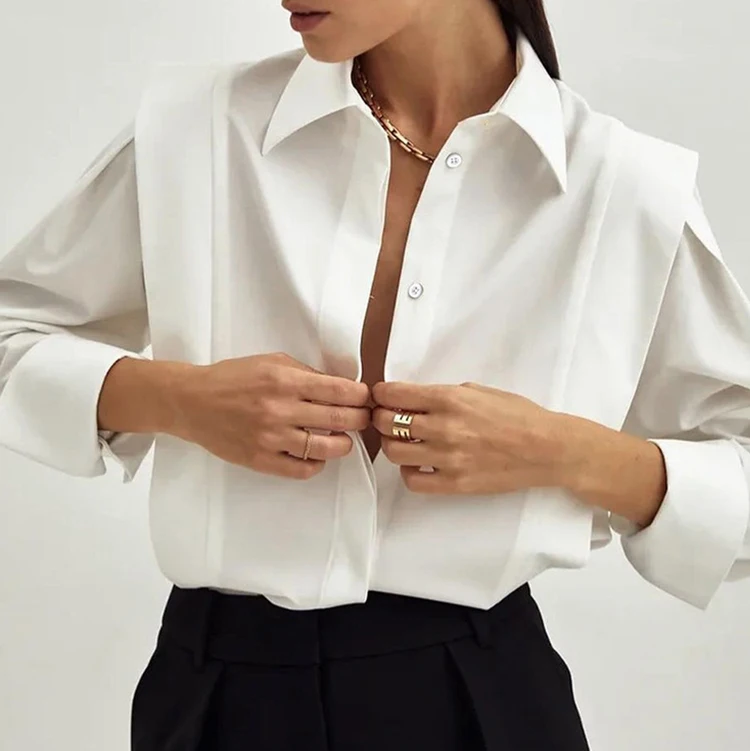 Custom High Quality Spring Summer Casual Blouses & Shirts Cotton Shirts Simple Elegant Long Sleeve Blouses Oversize Shirts