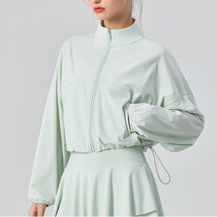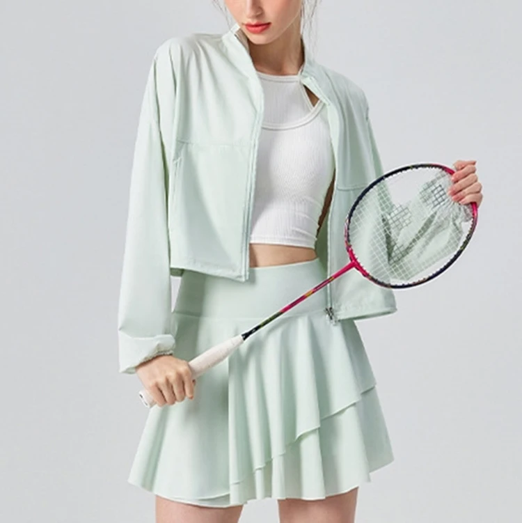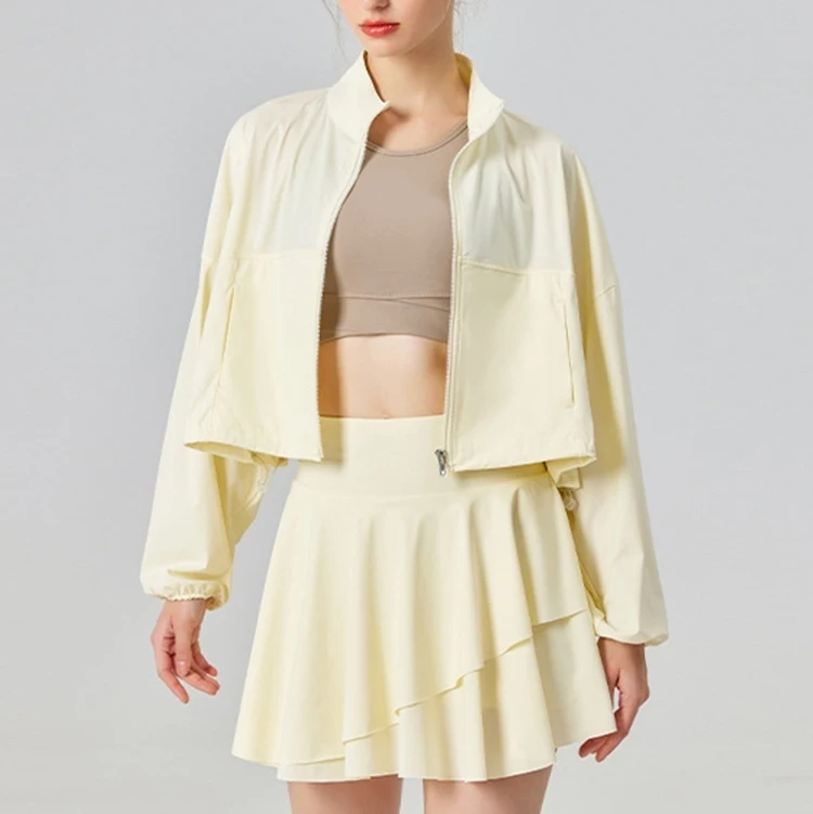 Custom High Quality Breathable Quick Dry Yoga Fitness Women Sport Wear Jogger Short Set Zip Sweatshirt Skirt Waist